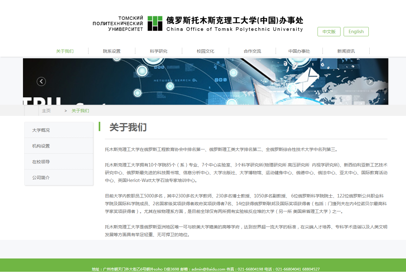 61俄罗斯托木斯克理工大学{中国}办事处 51个页面 120元 带轮播特效 7个6页面60元 网页成品