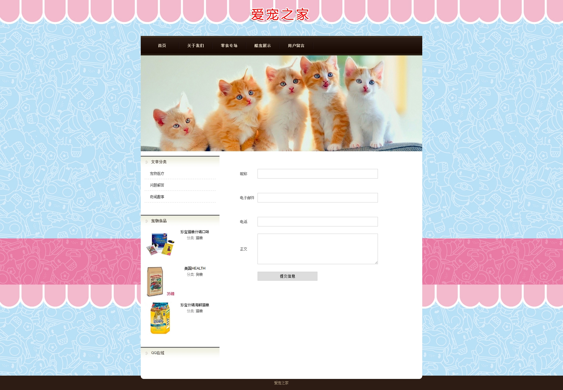 demo172蓝色版爱宠之家带留言板宠物(5页)(40元)