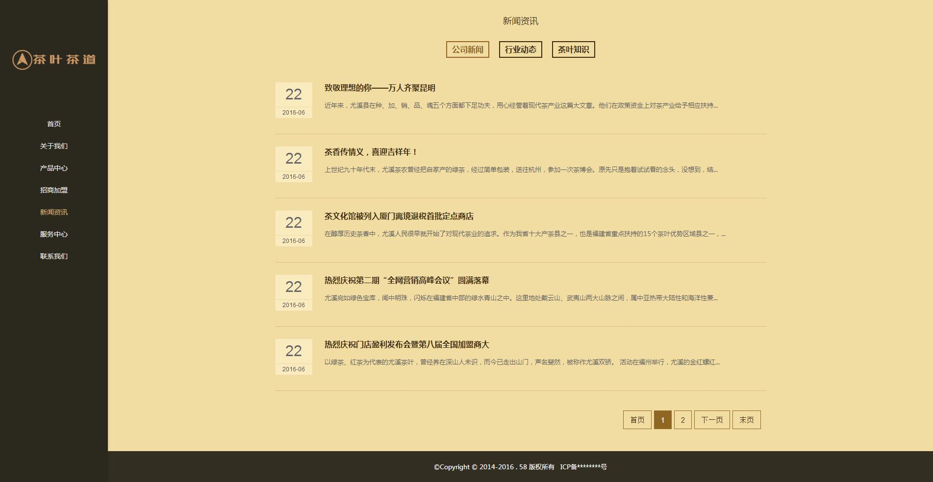 085liu响应式茶叶茶道类网站带滚动页面下拉菜单7个页面(50)52个页面(100)
