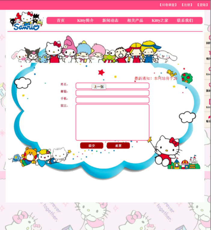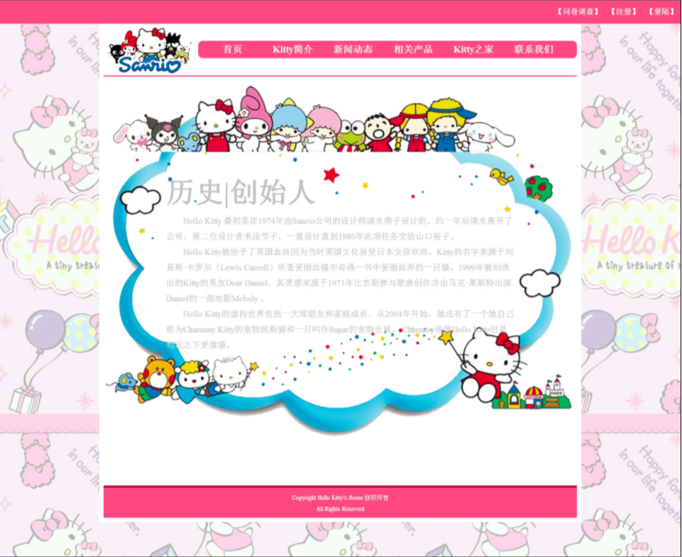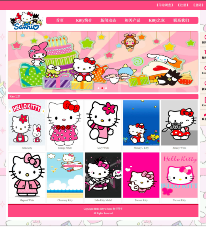 (100元)Hello Kitty's Home 45页面(40页面) 日本卡通动漫 带背景音乐 视频 设计说明 JS图