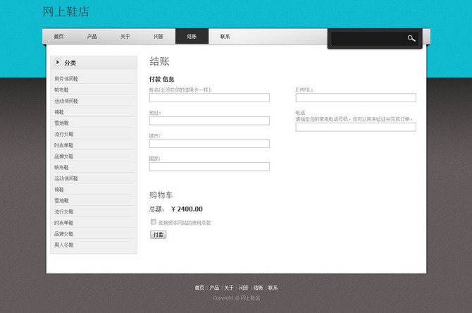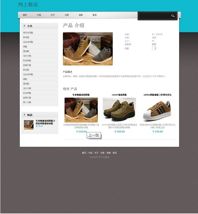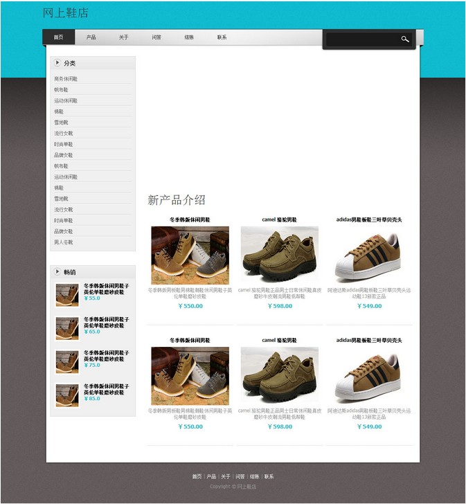 网上鞋店 7页面 电子商务类企业购物网站 带Flash带留言表单(60元)电商