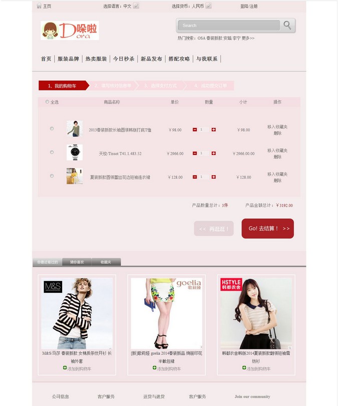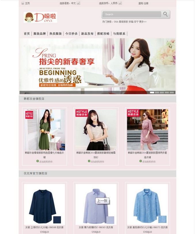 哚啦dora 服装销售网站8页面服装服饰电商购物品牌带轮播特效带注册页面 (60元)