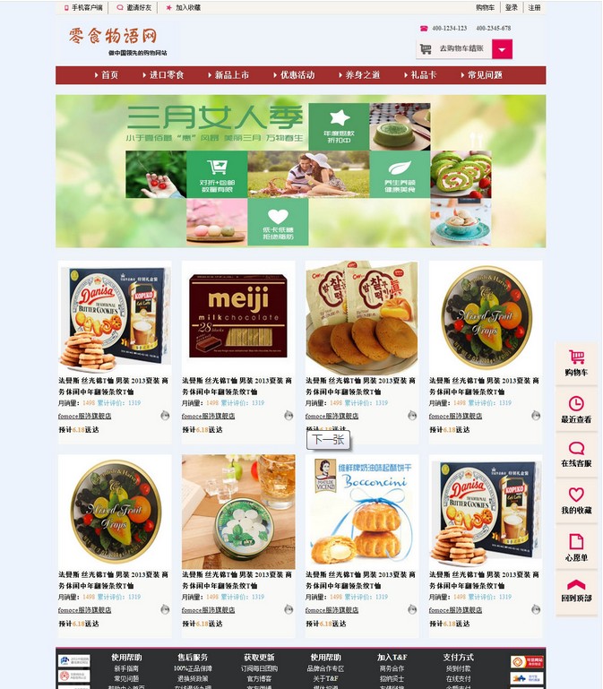 零食物语网 28页面或32页面电商购物零食美食团购主题带设计说明(论文)带轮播特效带购物车注册页面(70元)