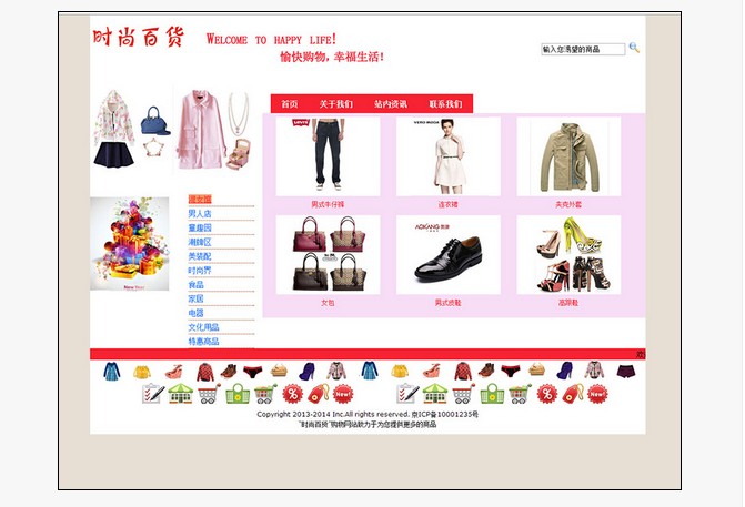 时尚百货网”电商企业品牌购物网站41页面40页面以上带flash带滚动学生水平技术简单(100元)