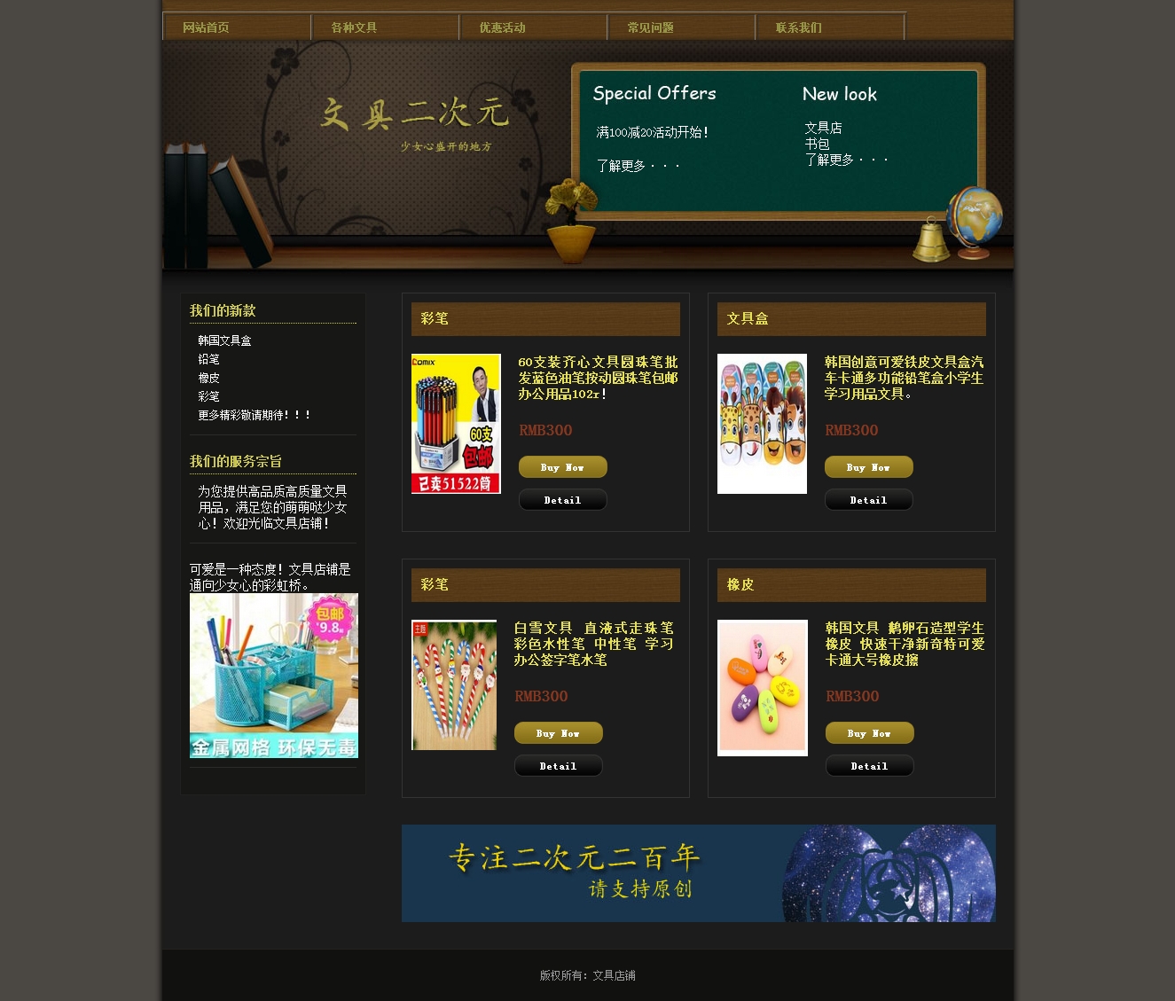 350文具店铺2页面电子商务购物(30元)网页设计作业成品大学生 电商