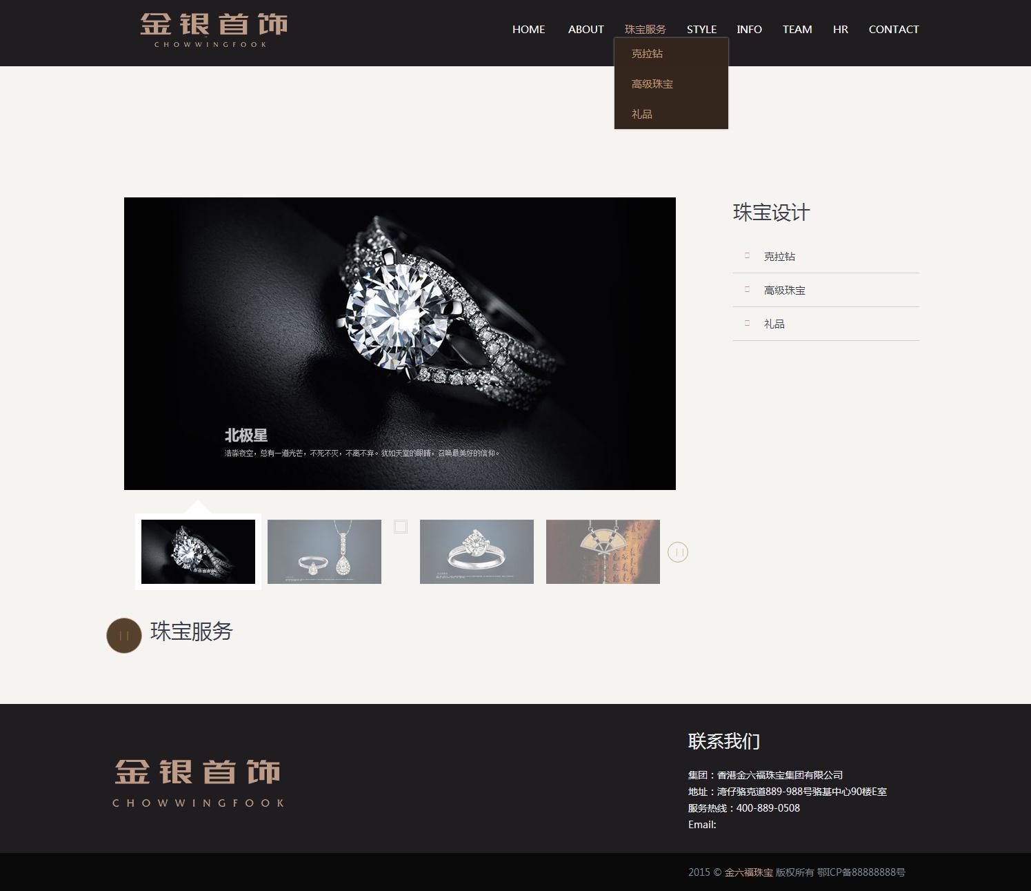wenli008珠宝单页面(20元)带下拉菜单特效轮播html5自适应60页面(100元)7页面(040元)电商