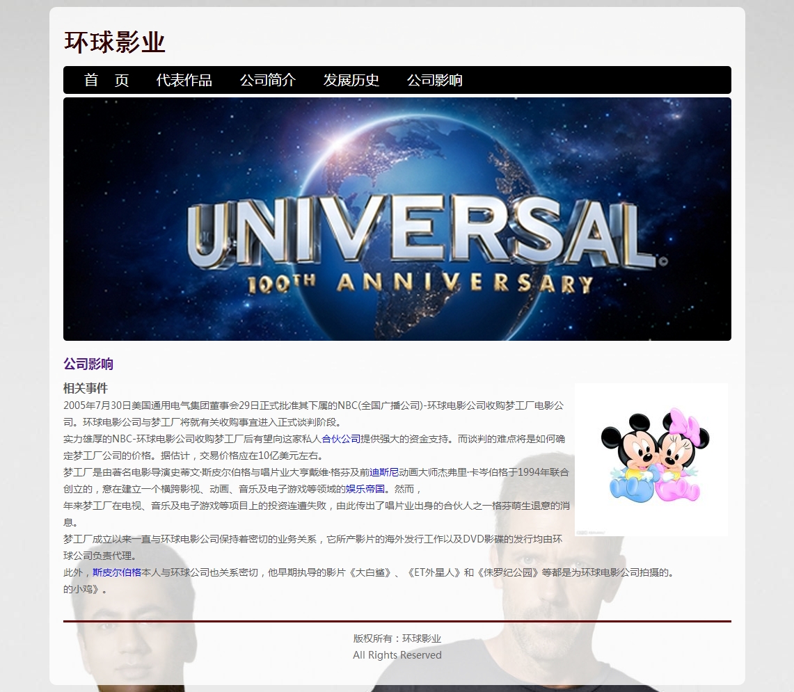 201环球影业单页面6页面表格dw网页设计作业 (2)(50元)电影