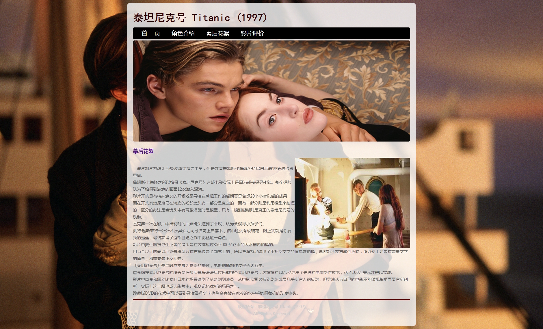 z012电影泰坦尼克号4页面带特效带音乐(40元)