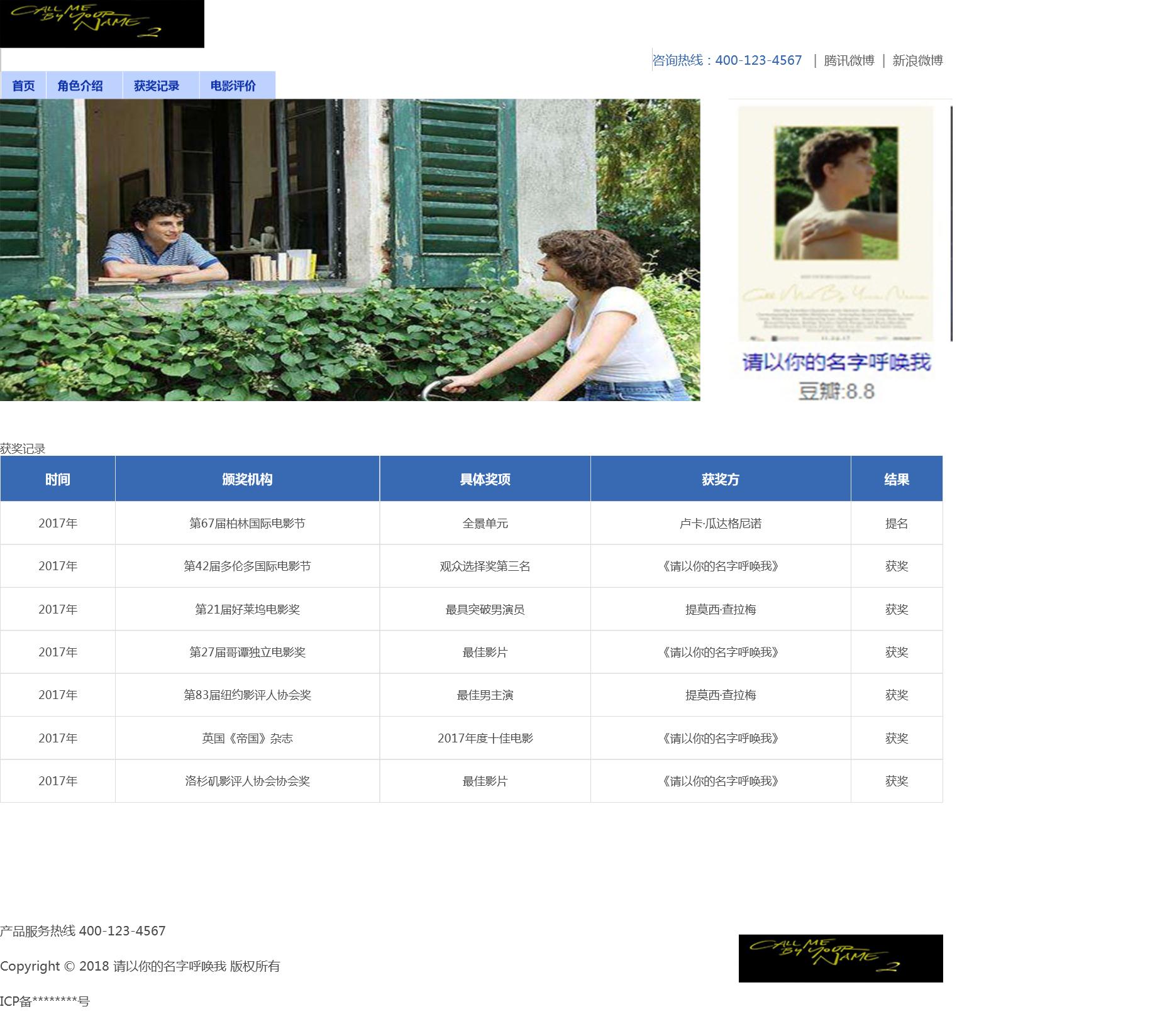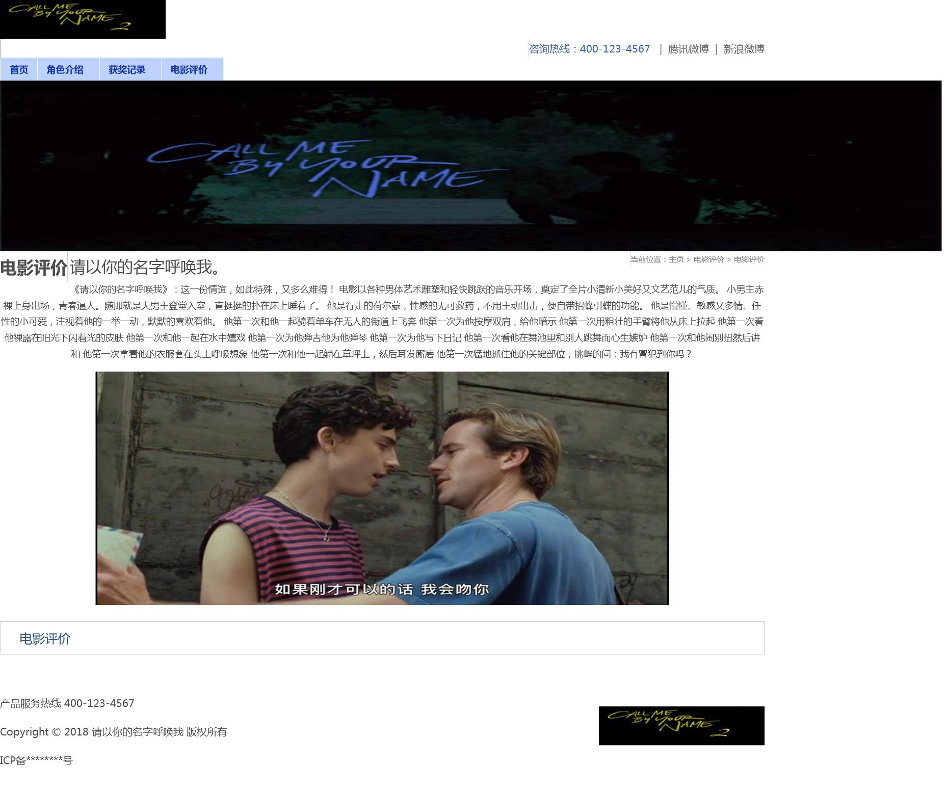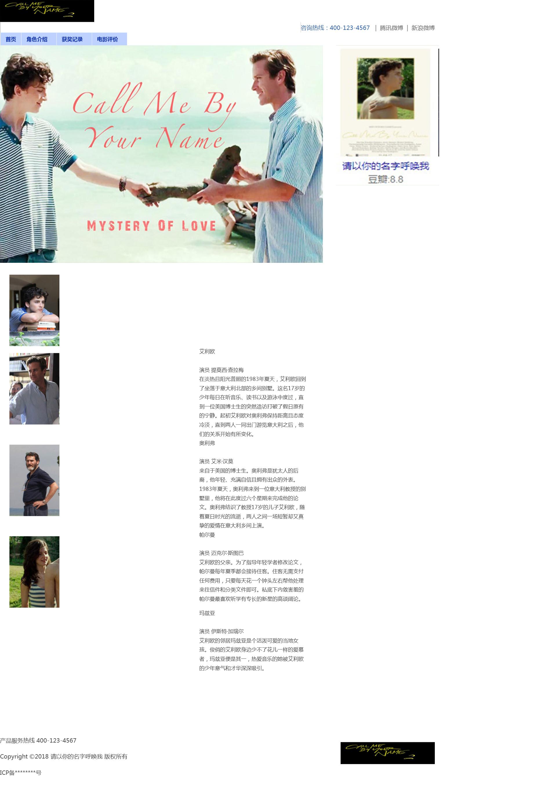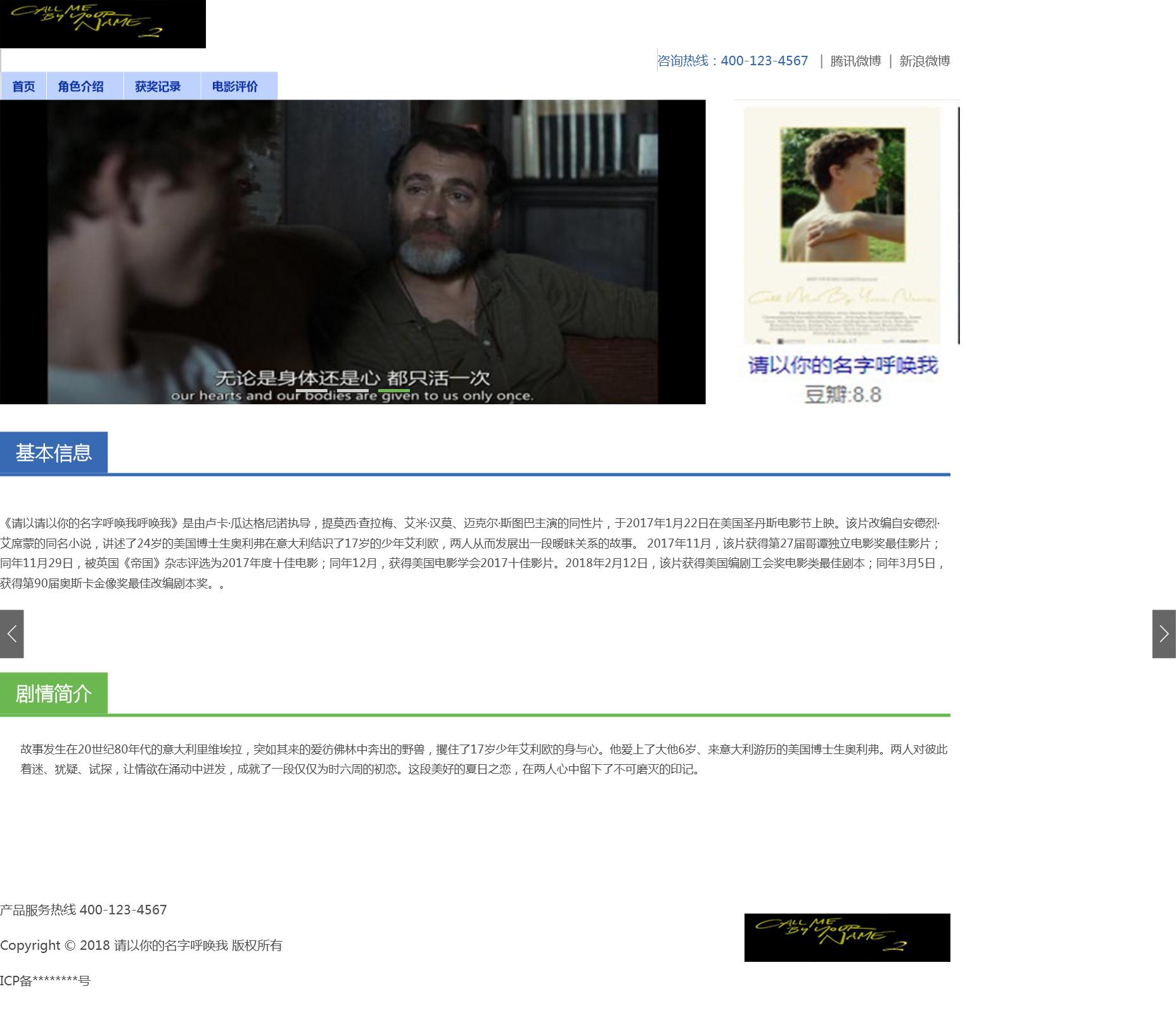 z136电影请以你的名字呼唤我响应式页面4页面带轮播(40元)