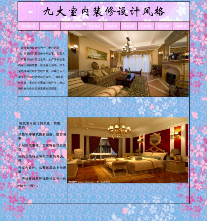 (70元)九大室内装修设计风格 10页面 房地产建筑室内设计主题 表格布局样式多样带背景音乐