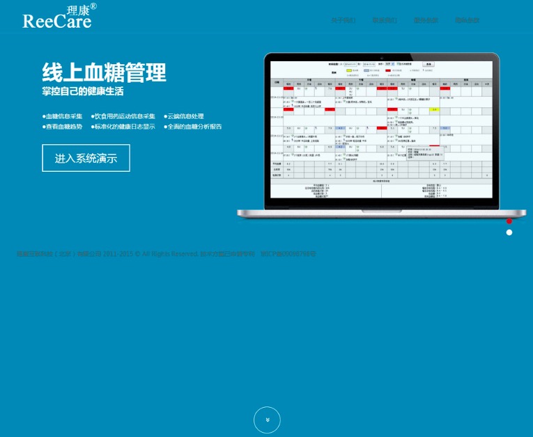 (20元)理康-ReeCare 单页面 医疗健康企业官网 掌上血糖管理 带psd 带页面切换特效 js轮播特效
