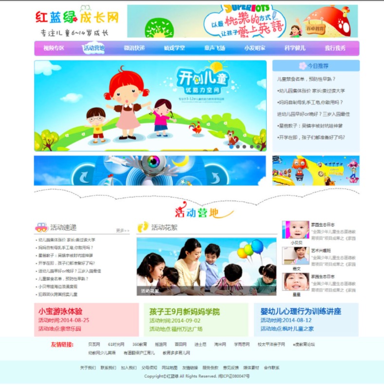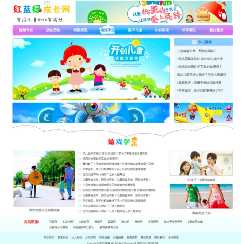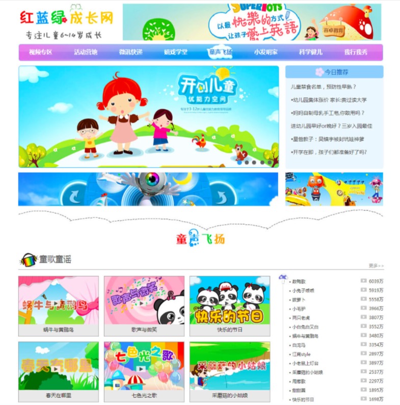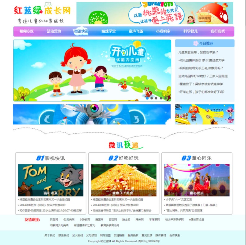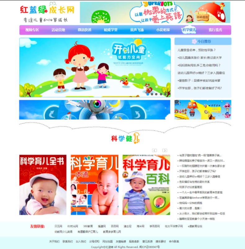 红蓝绿成长网 15页面(60元) 8页面(40元) 单页面(30元儿童)健康成长知识分享主题 带背景音乐 设计活泼可爱