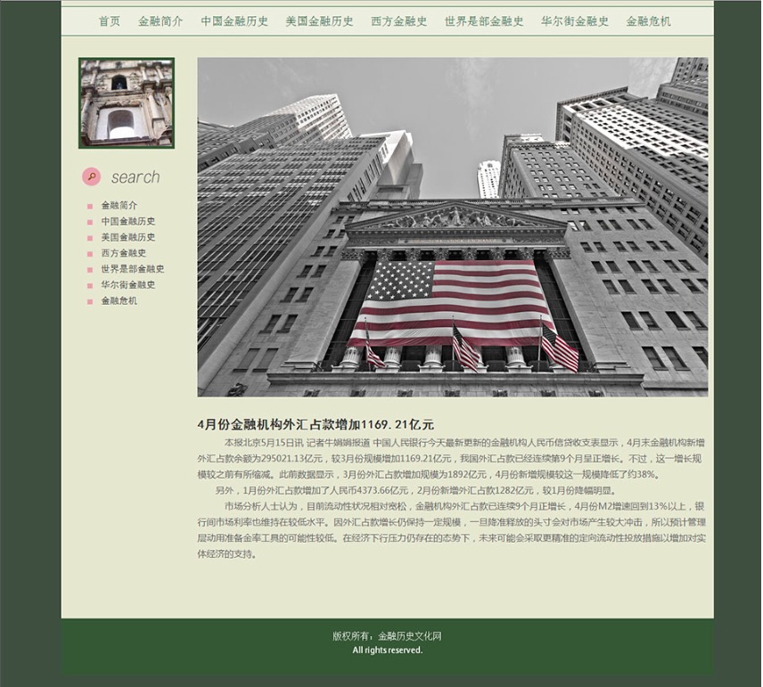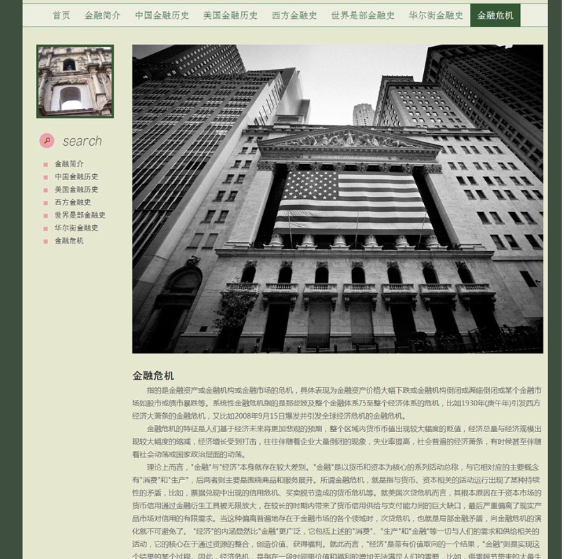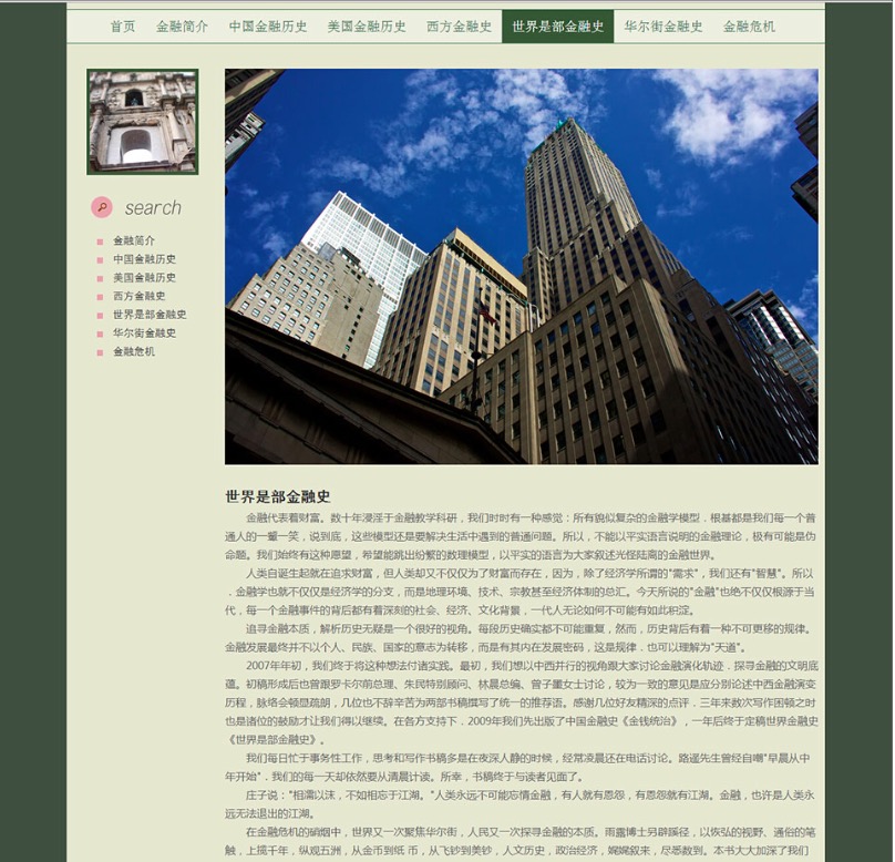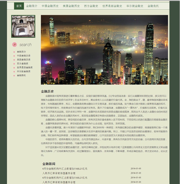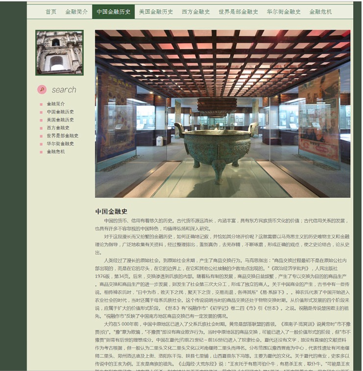 (70元)金融历史文化网 金融历史介绍主题15页面 版本B 布局简单时尚