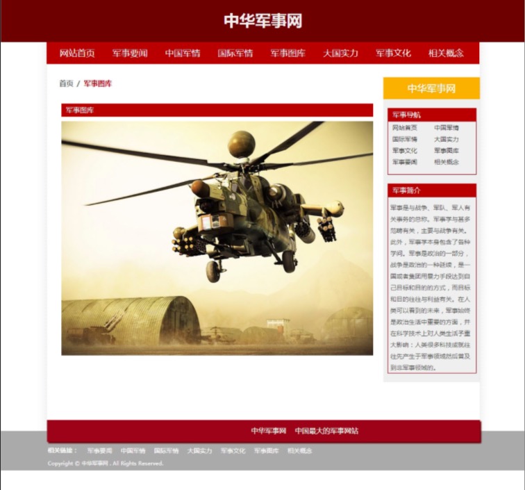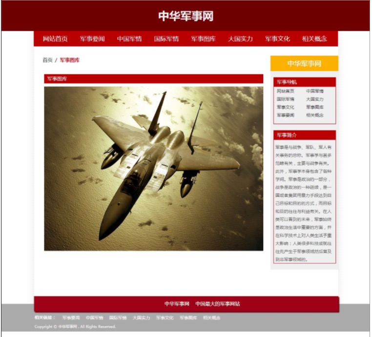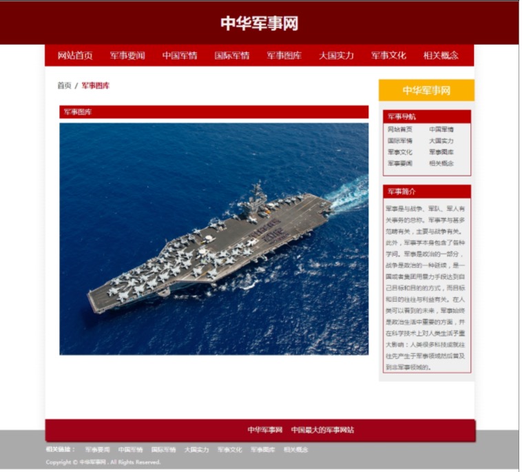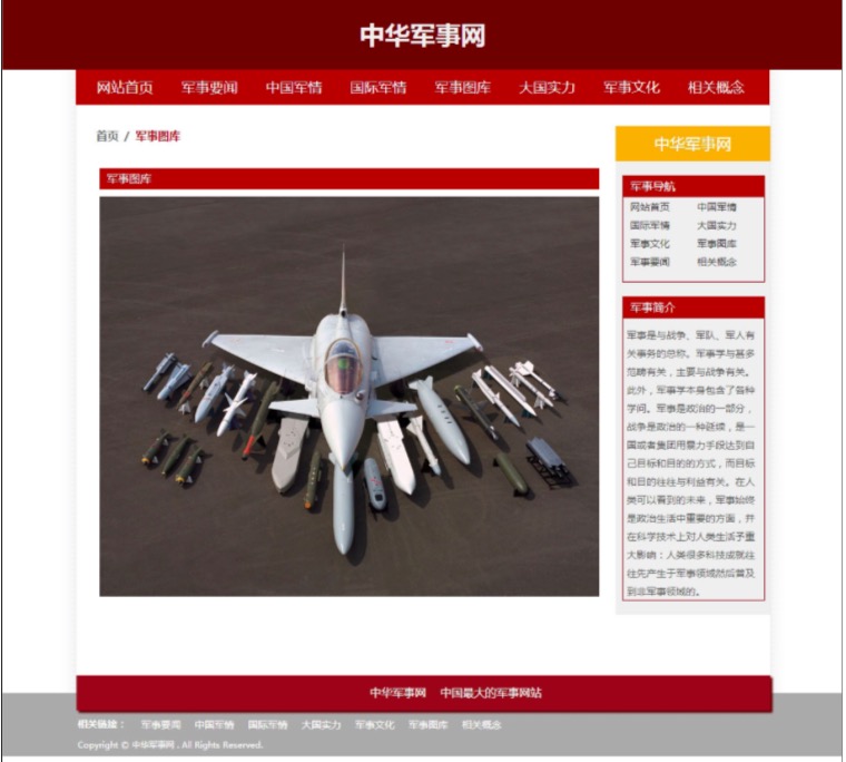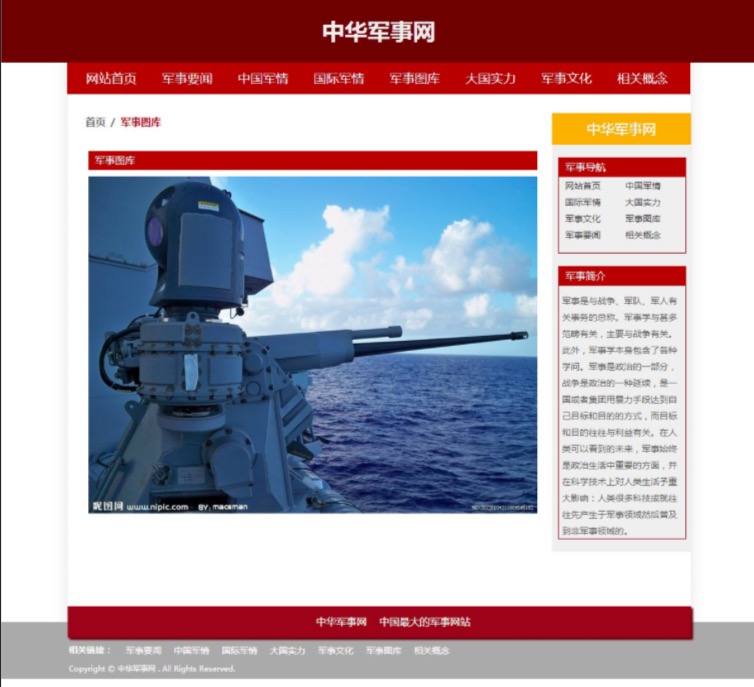 中华军事网 10页面(70元) 9页面(70元) 6页面(50元) 军事新闻门户网站 带设计说明(论文)带JS轮播特效带