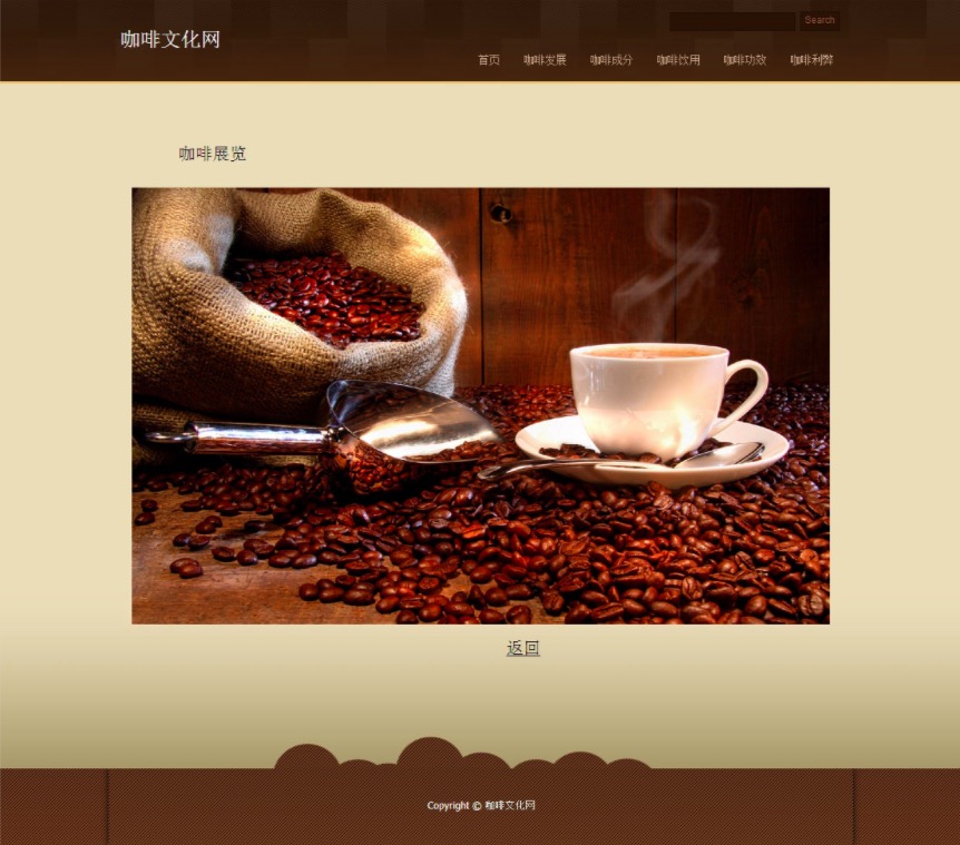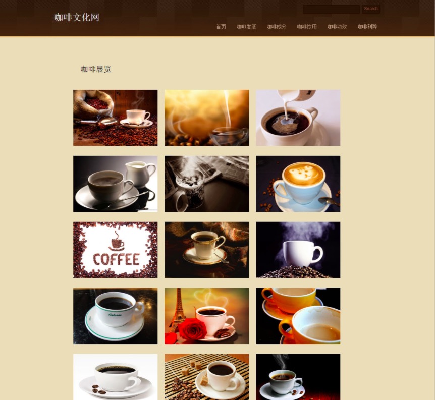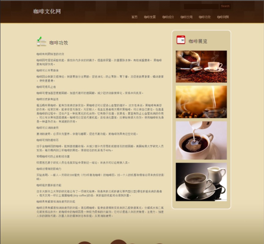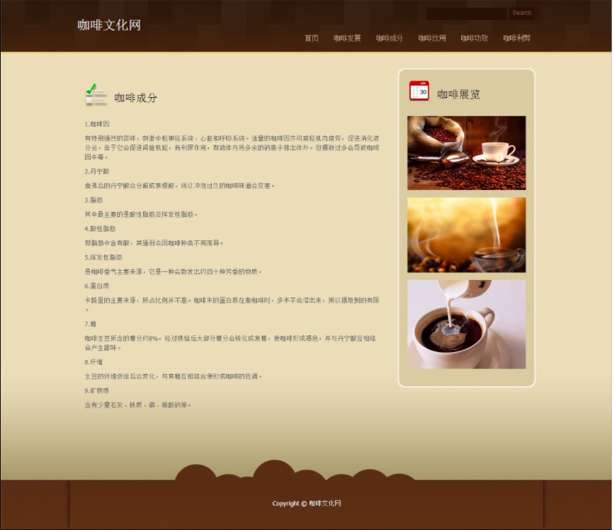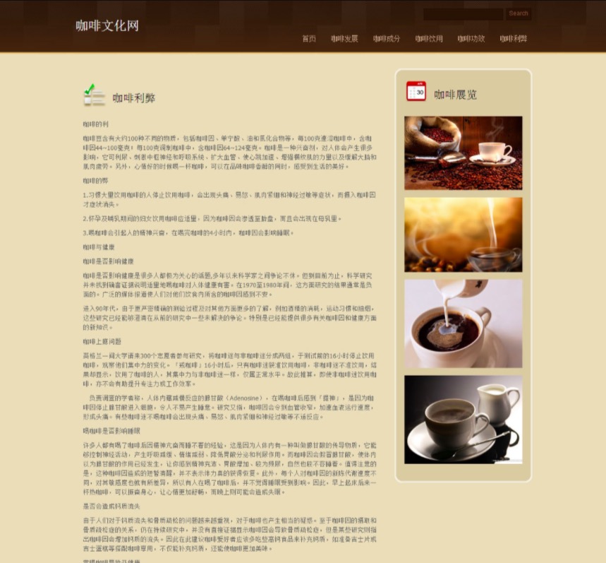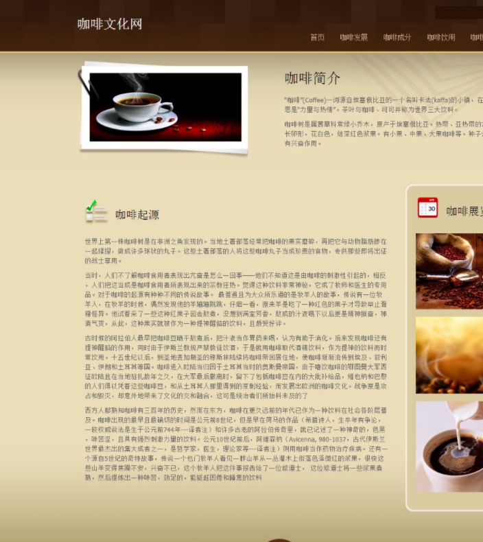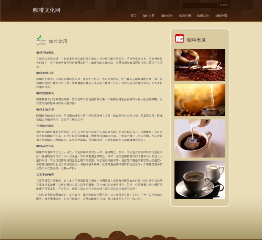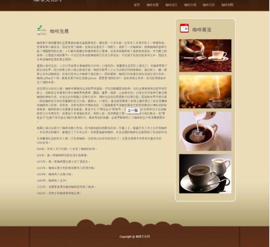 咖啡文化网 25页面(50元) 16页面(40元) 6页面(30) 单页面(20元) 咖啡美食饮品主题 带背景音乐 设计