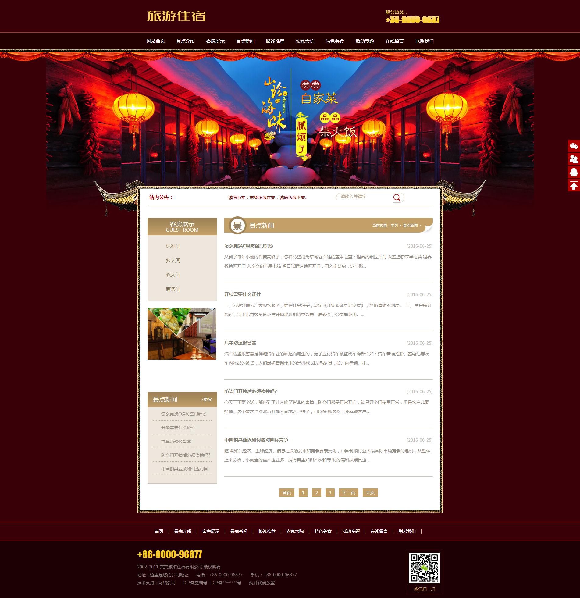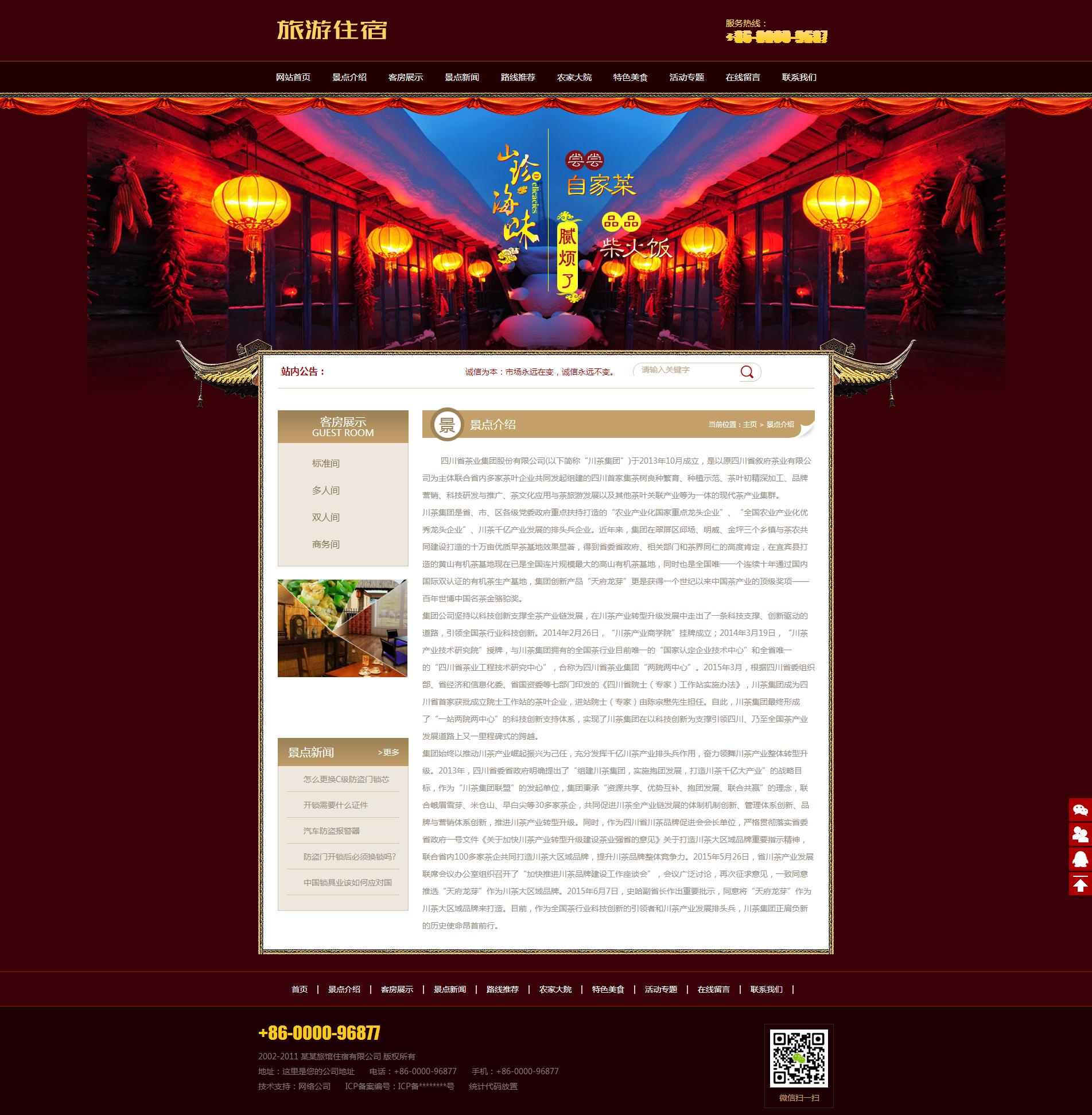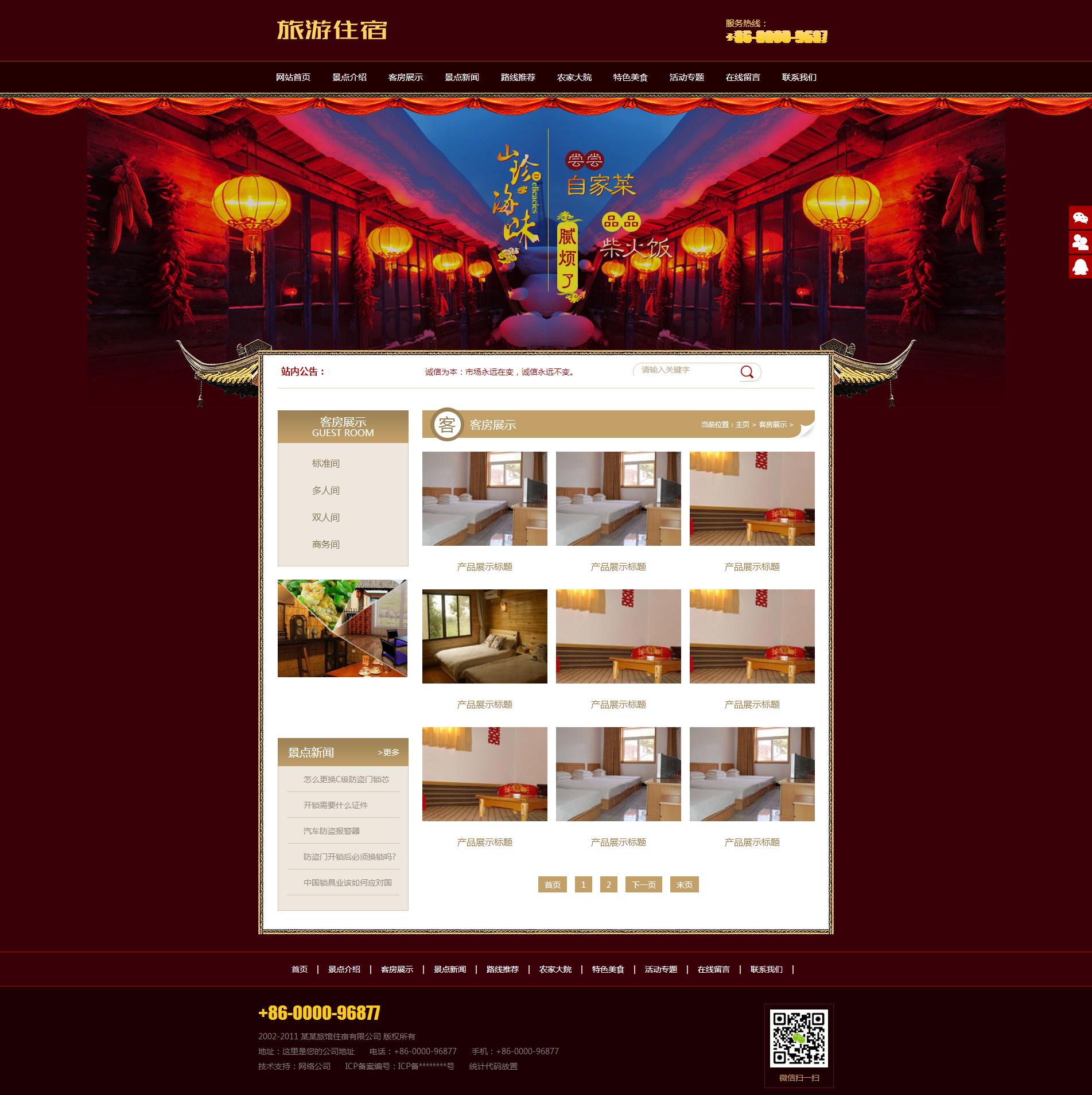 016wenli旅游住宿农家乐带下拉菜单轮播特效酒店60页面(100元)10页面(60元)