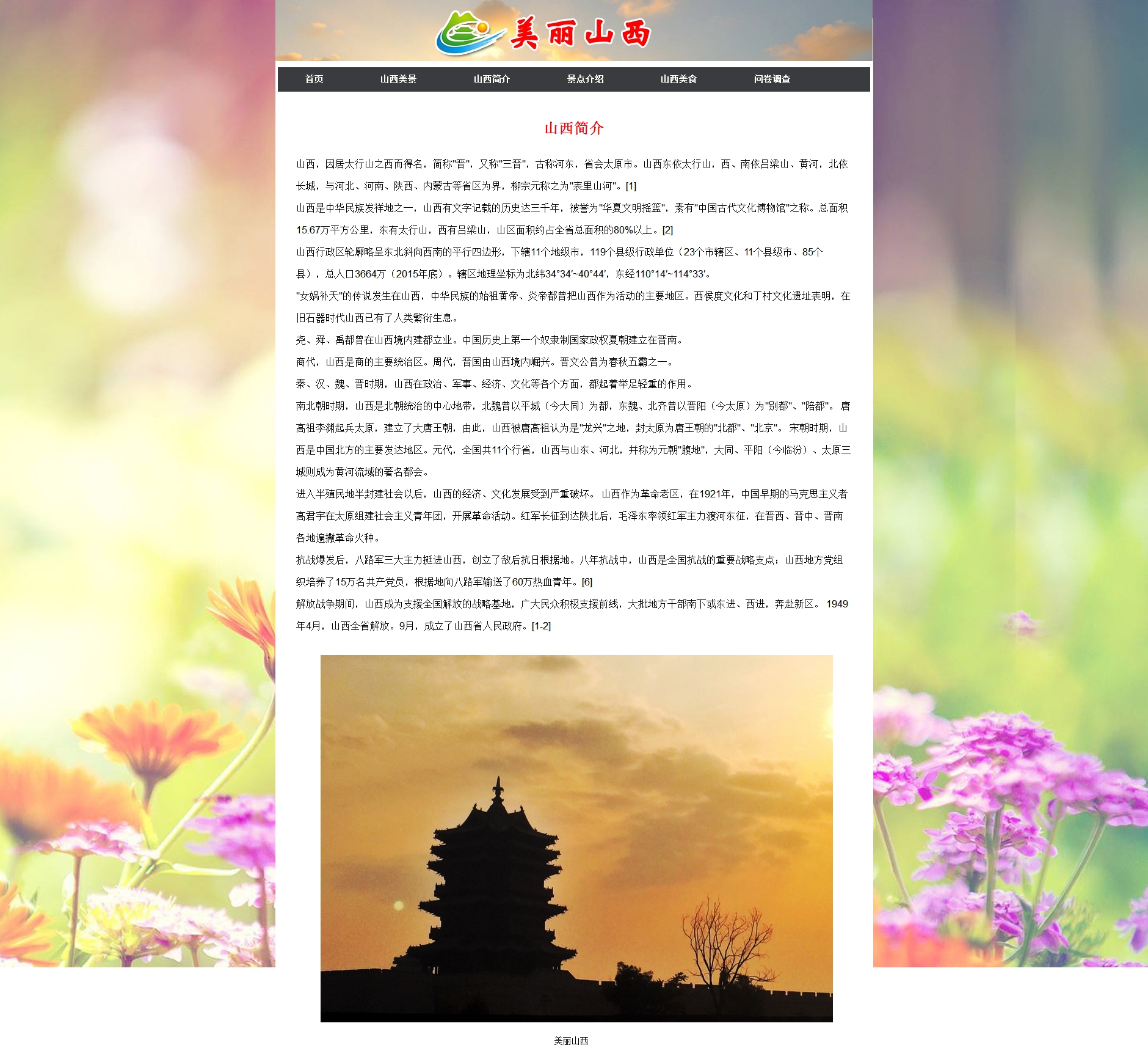 demo181美丽家乡山西文化6页面带表单带flash旅游(50元)