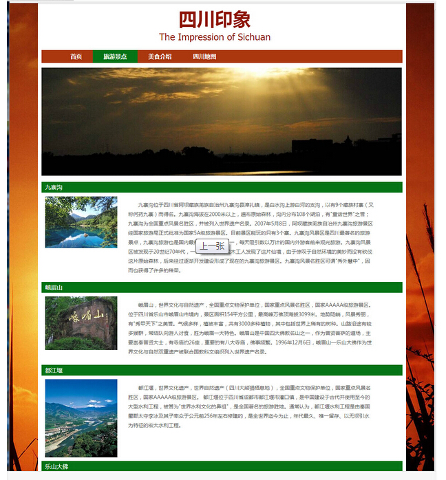 (80元)四川印象 20页面 12页面(70元) 地方旅游美食主题带flash带图片滚动带表格布局带flame框架技