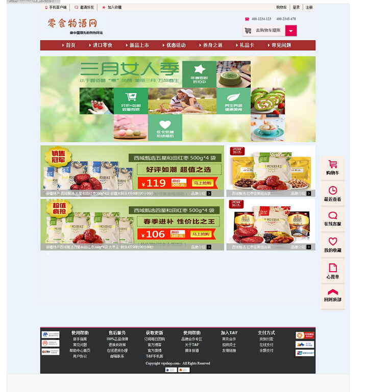 (120元)零食物语网50页面 28或32页面(80元)电商购物零食美食团购主题带设计说明(论文)带轮播特效带购物车