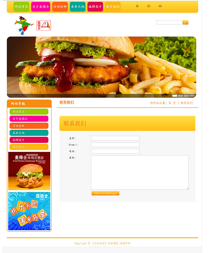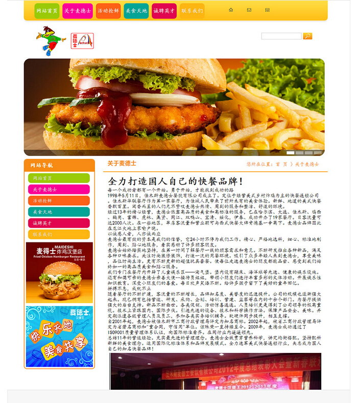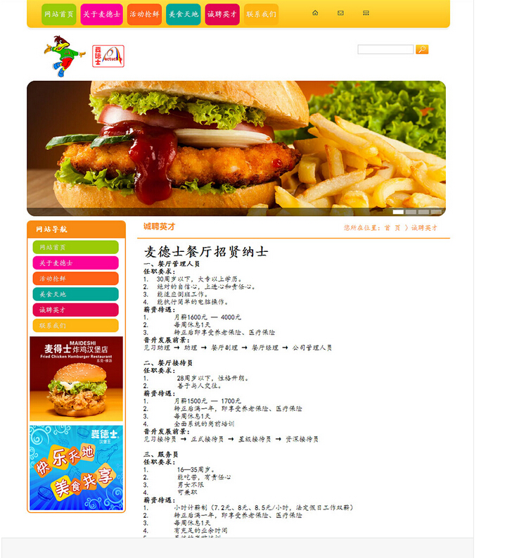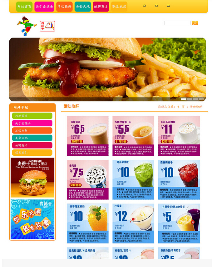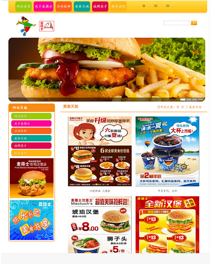 (50元)麦德士餐饮有限公司 餐饮美食汉堡企业网站6页面带轮播(1/6)