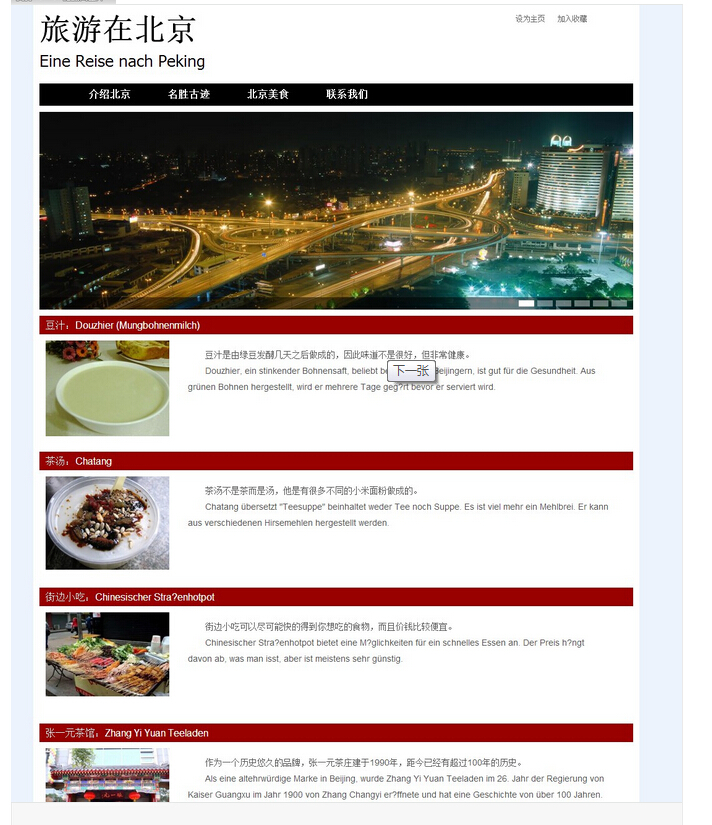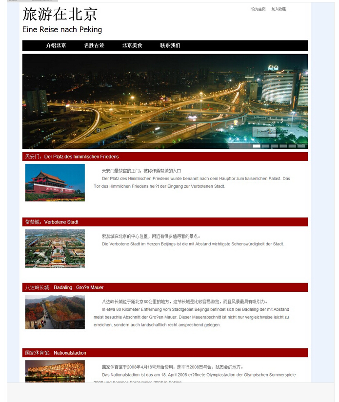 (30元)旅游在北京 地方旅游美食主题4页面中文德语双语版带轮播图片滚动带(1/4)