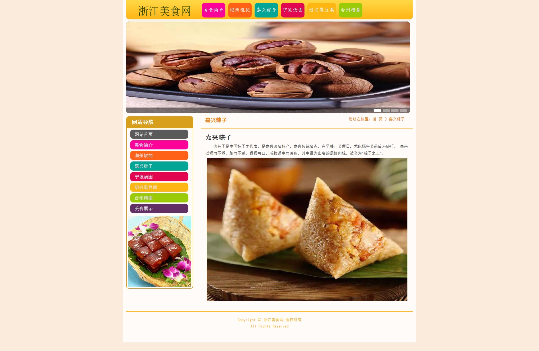 z053浙江美食8页面带音乐带轮播特效(60元)