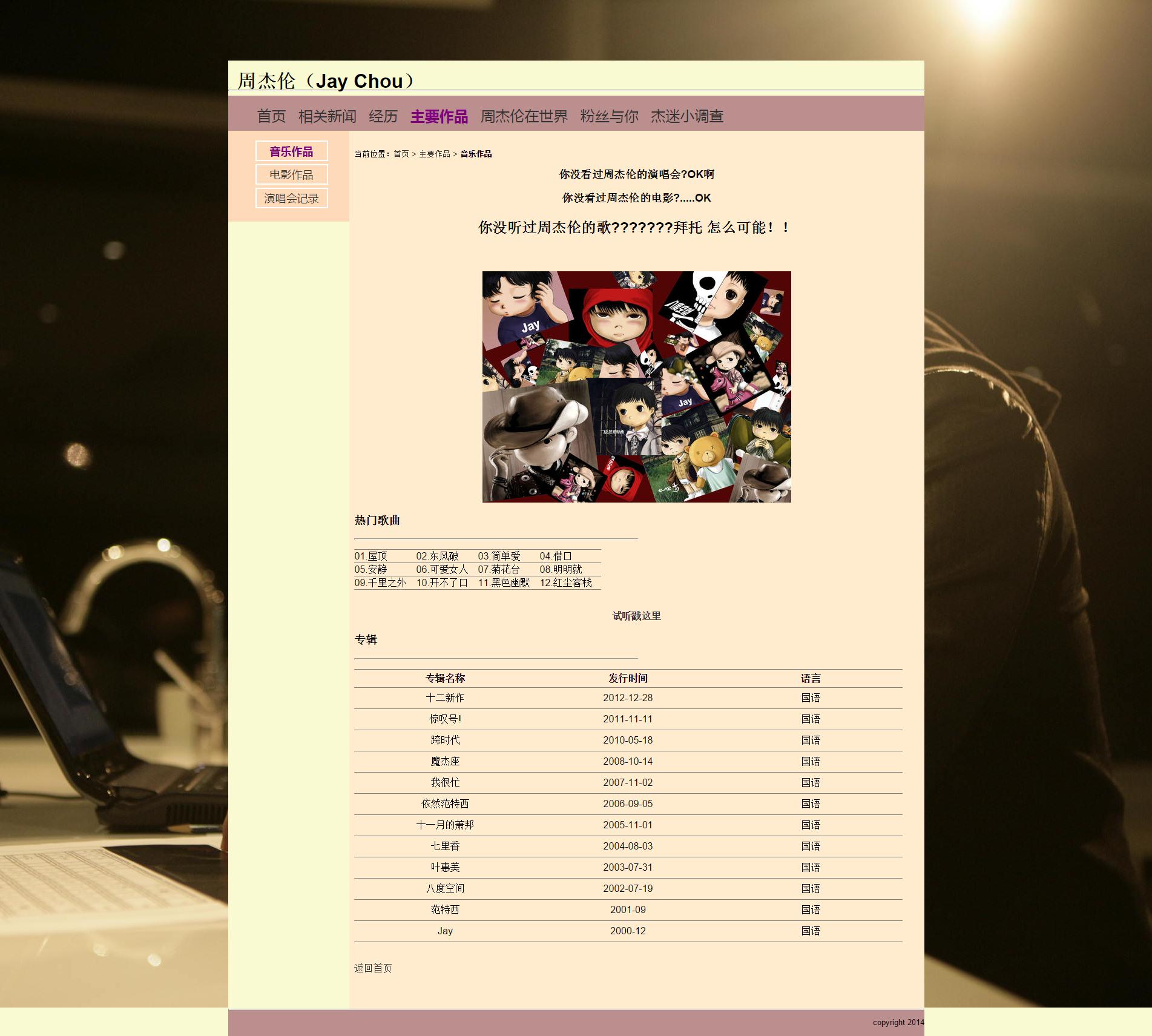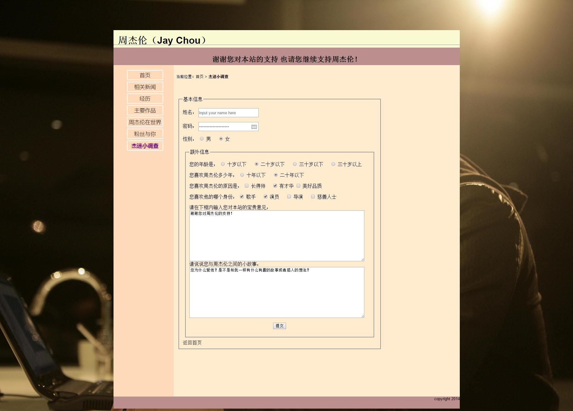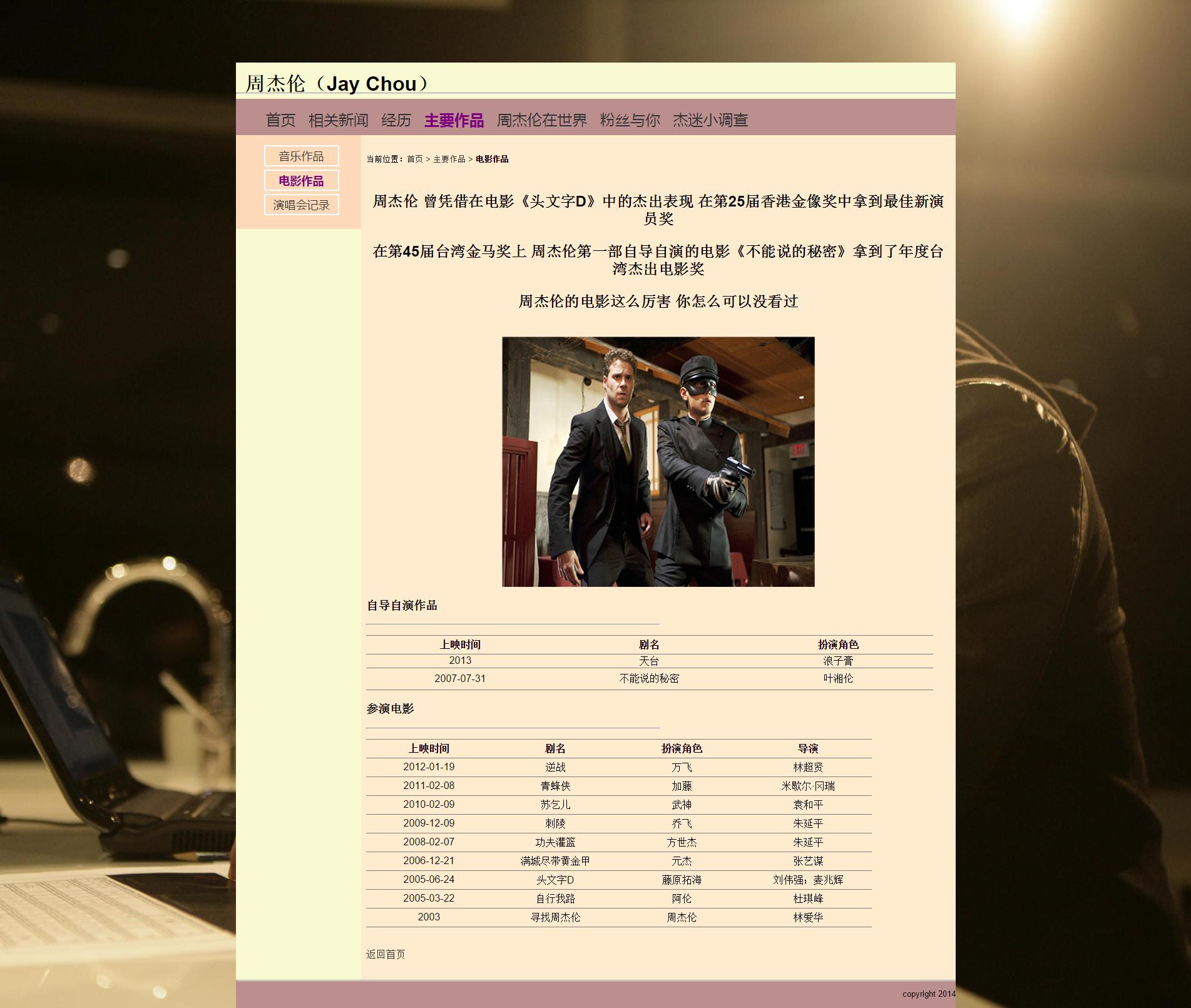 (70元)元周杰伦 10页面 影视明星主题带简单设计说明带背景音乐带图片动画带文字滚动带表单(1/10)