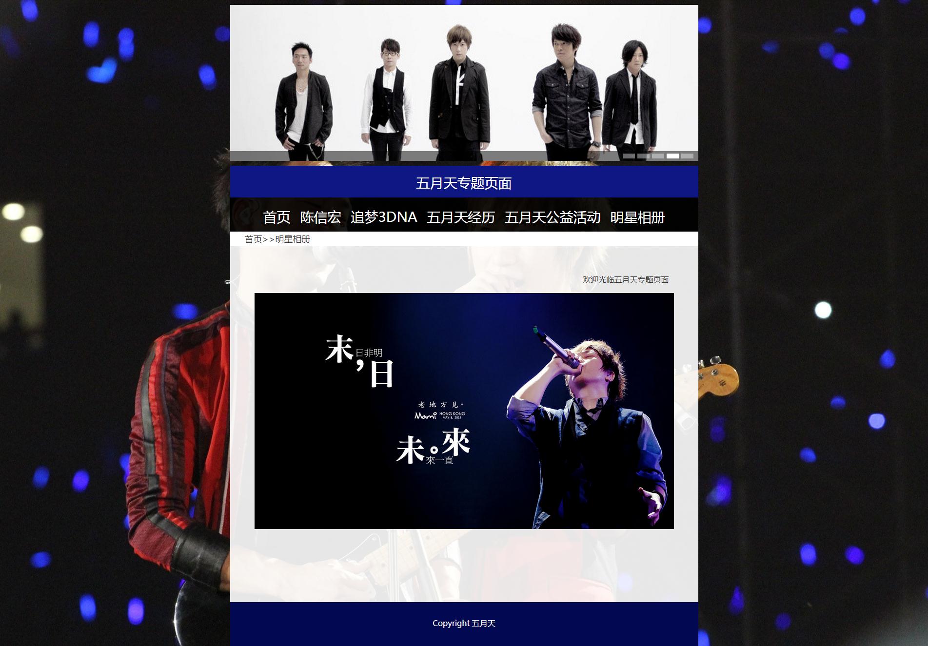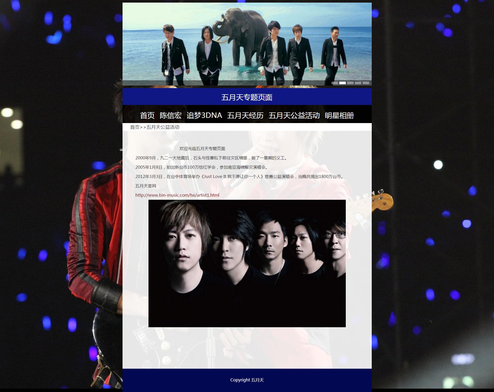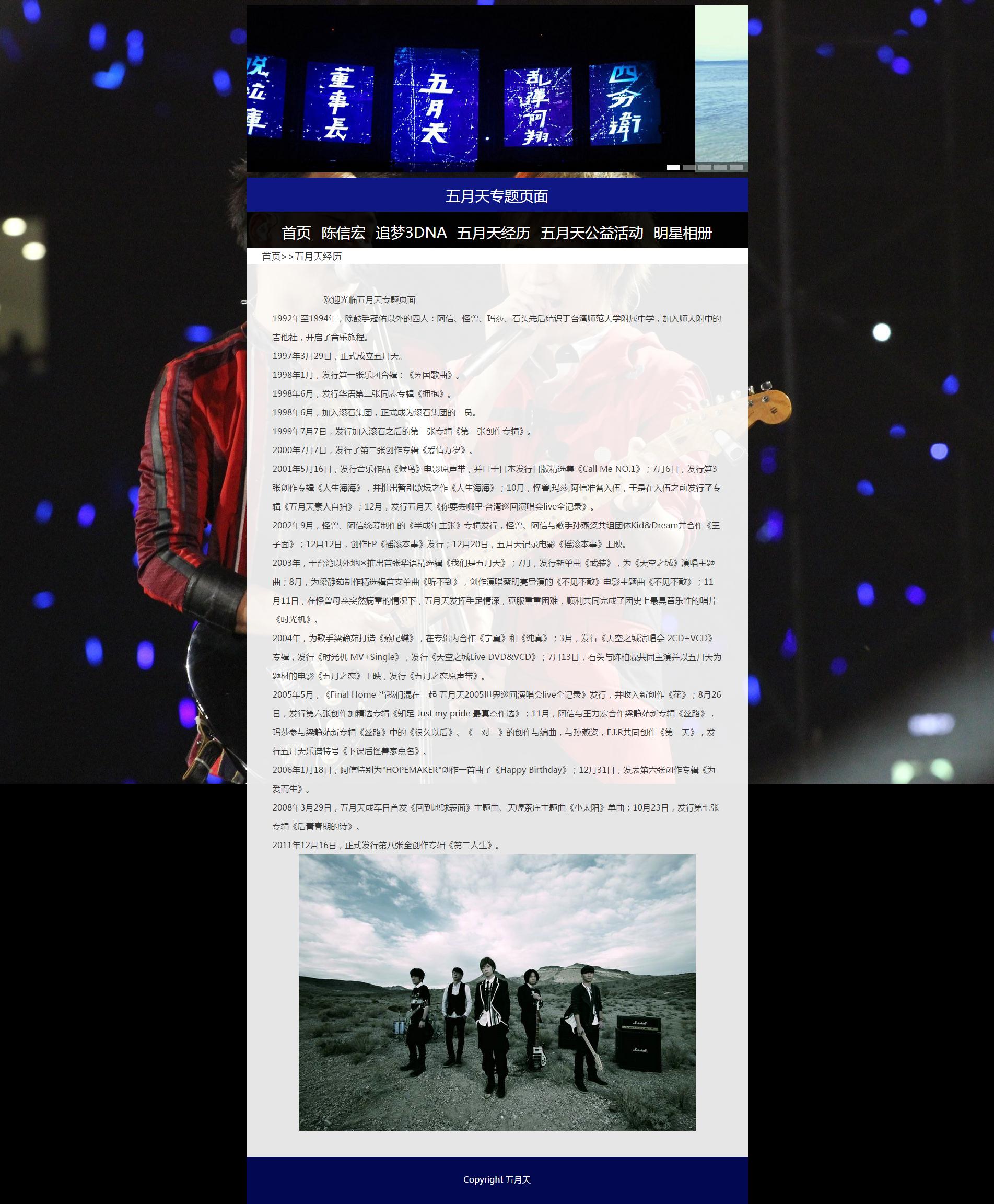 (90元)台湾五月天 30页面(20页面80元)(10页面70元) 明星歌手演员介绍专题带Flash带背景音乐带JS轮播