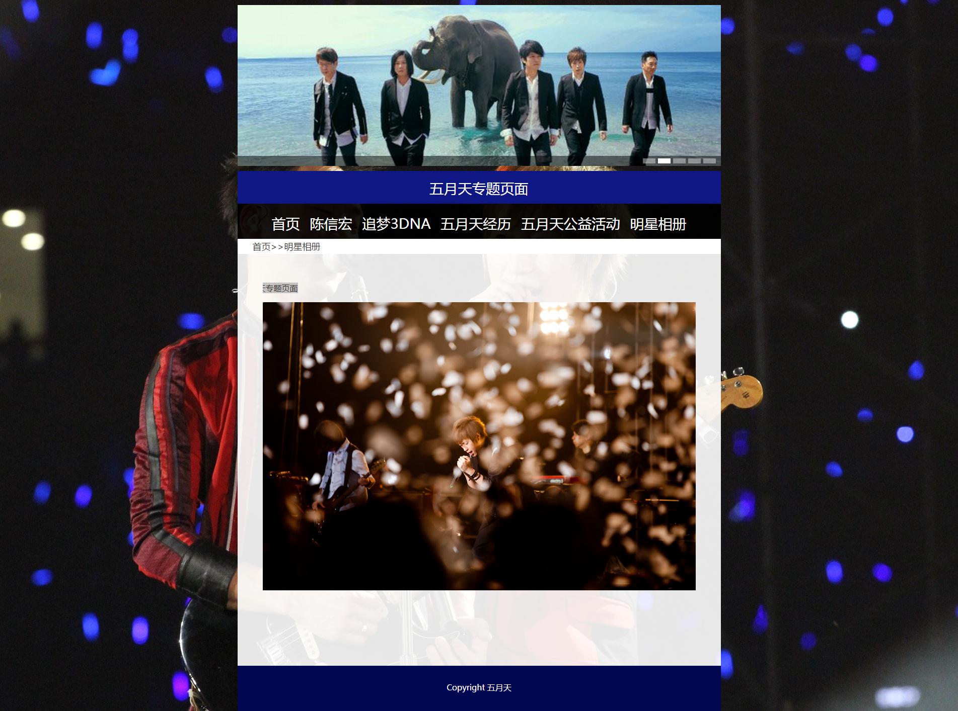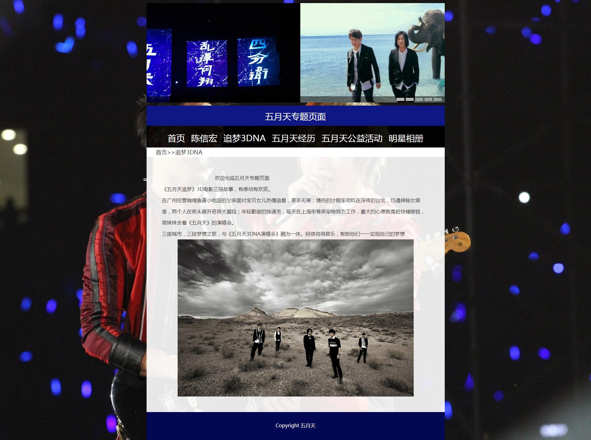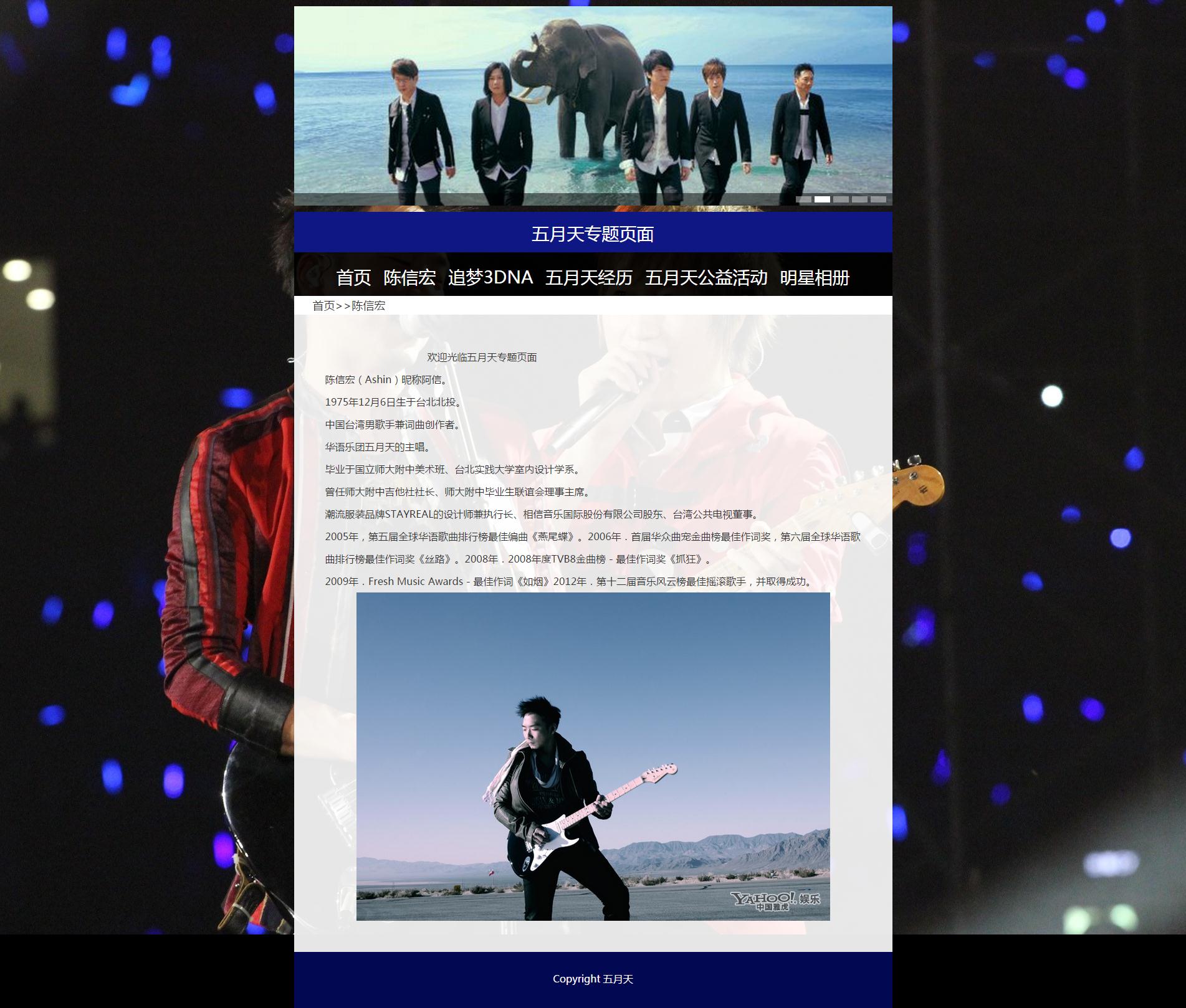 (90元)台湾五月天 30页面(20页面80元)(10页面70元) 明星歌手演员介绍专题带Flash带背景音乐带JS轮播