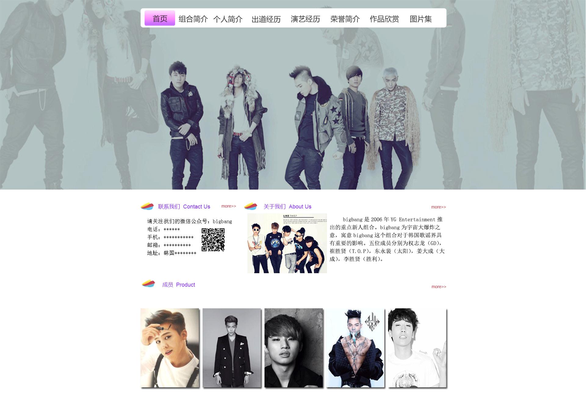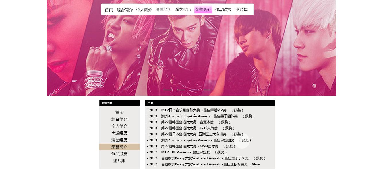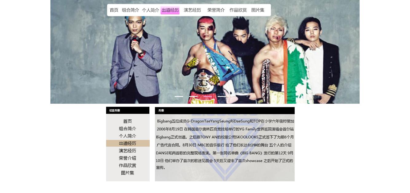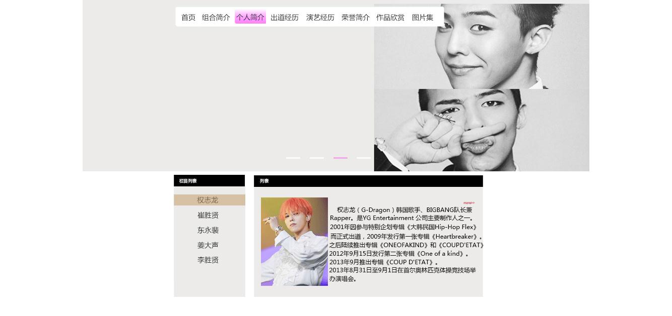 (70元)明星网页带首页flash进入15页面切片表格布局
