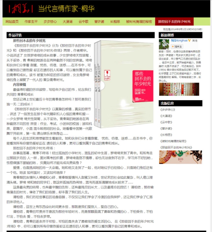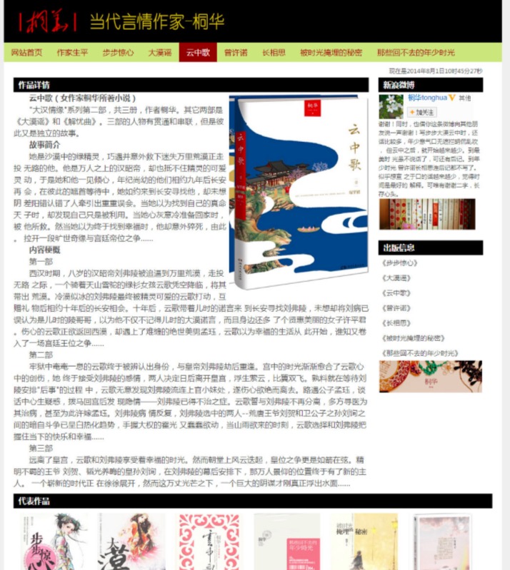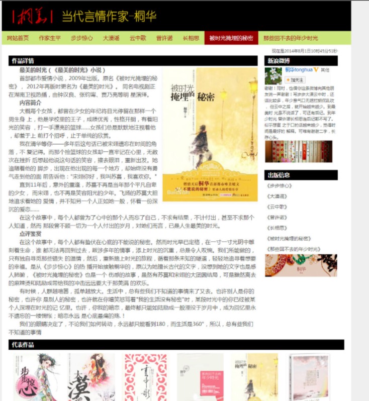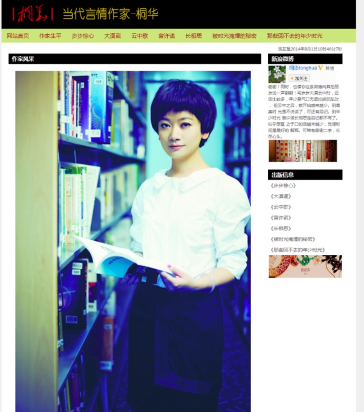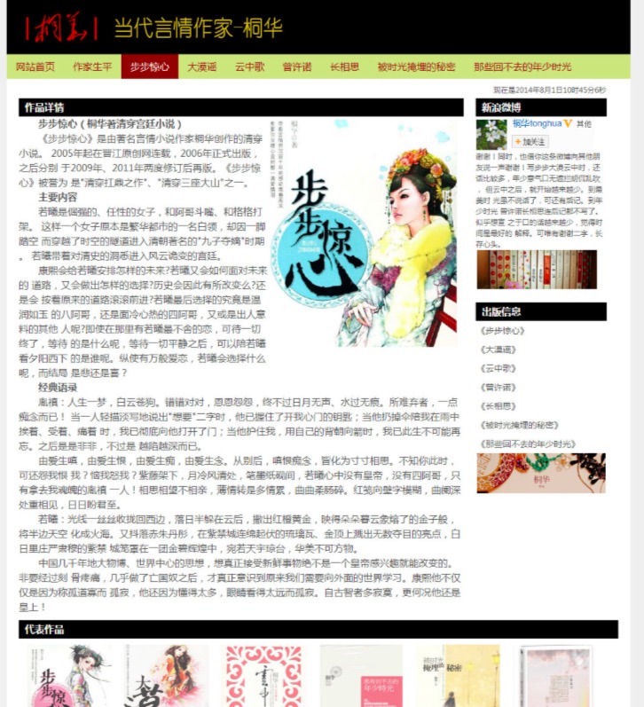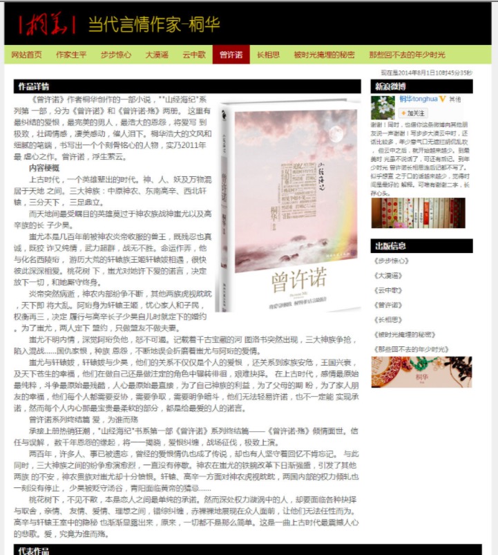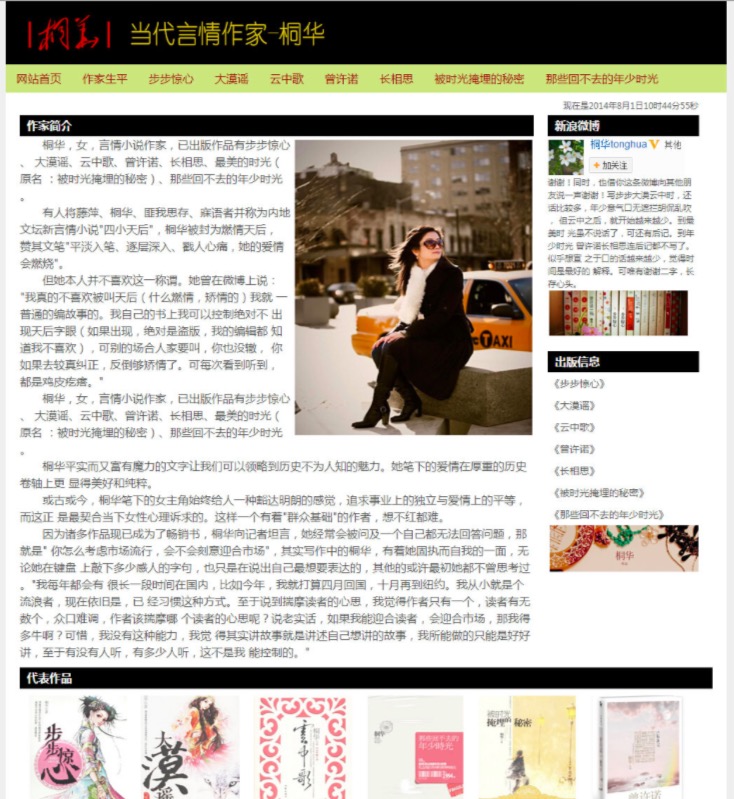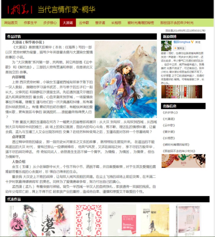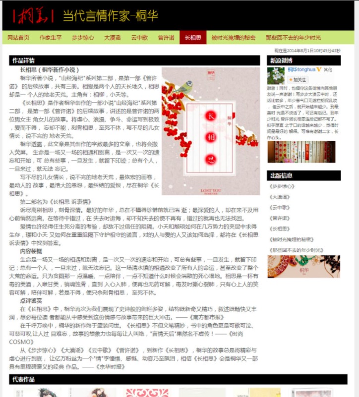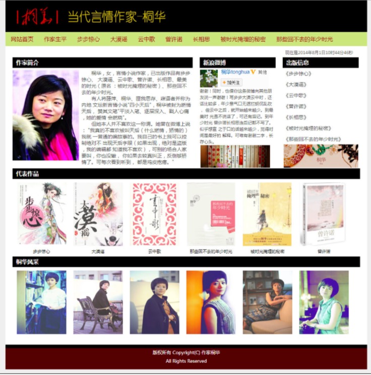 80元当代言情作家-桐华 15页面 小说散文作家主题带简单设计说明带背景音乐带psd带时间特效代码设名著