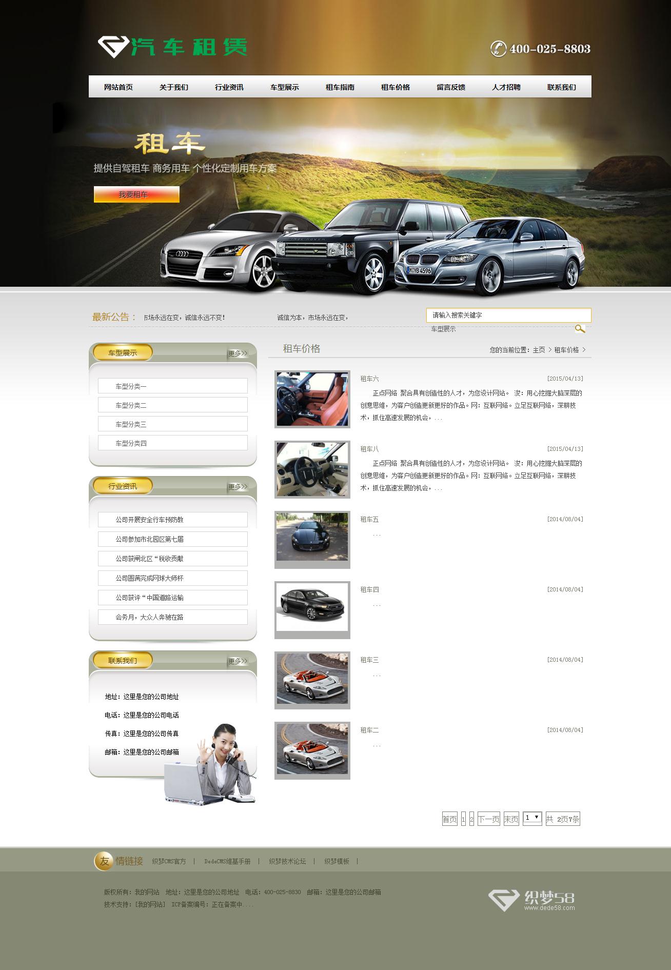 085xiaohai汽车租赁47个页面120元 加特效 9个页面60元