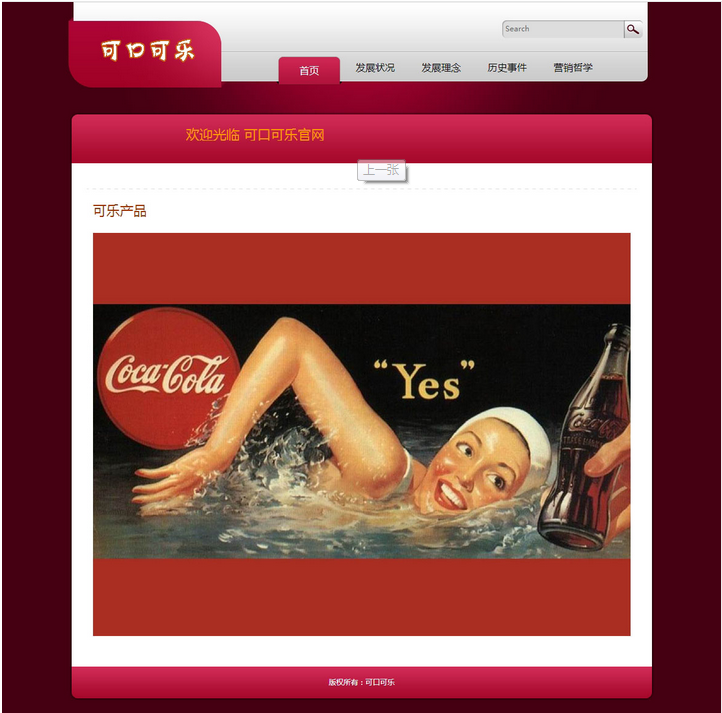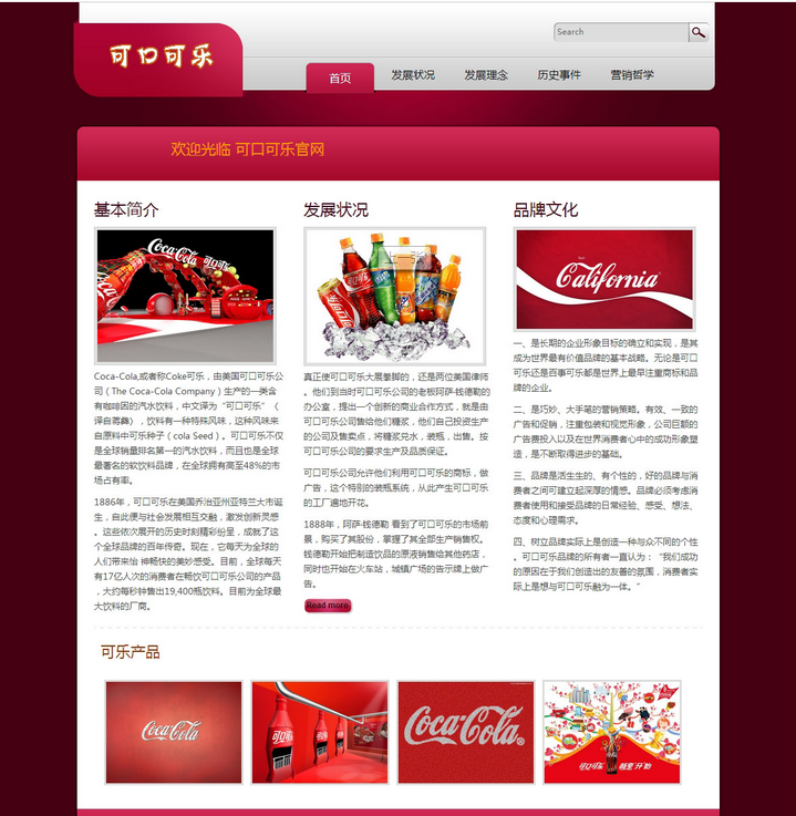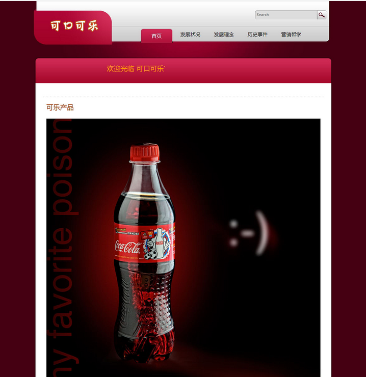 可口可乐 18页面 碳酸饮料企业公司品牌网站 带文字滚动带背景音乐(70元)企业站