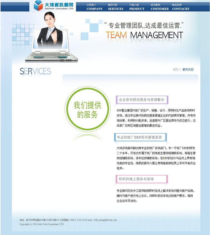 大玮资讯顾问 公司企业网站简体版7页面三级结构带PSD(60元)企业站