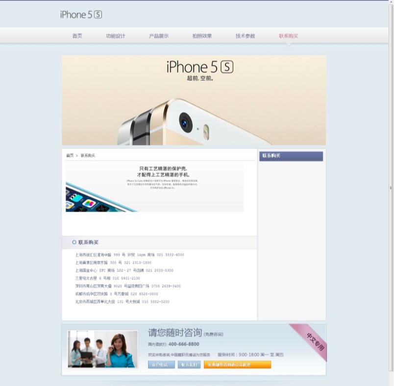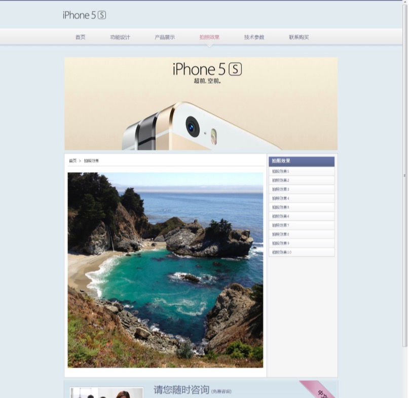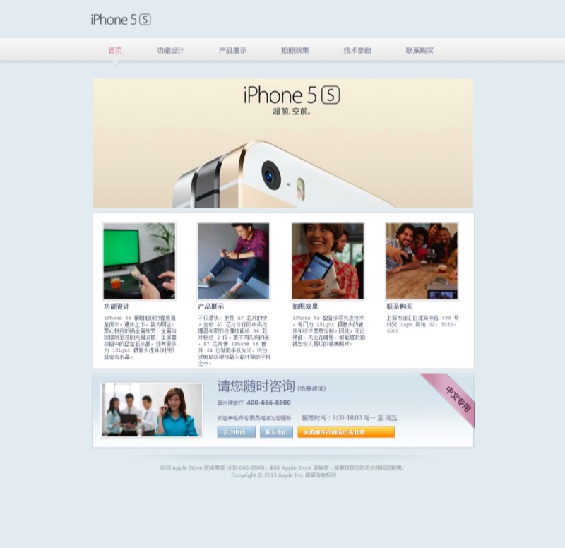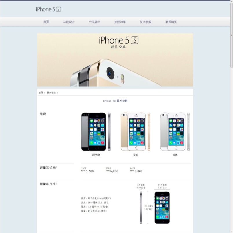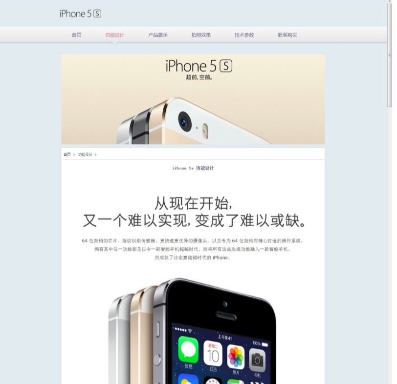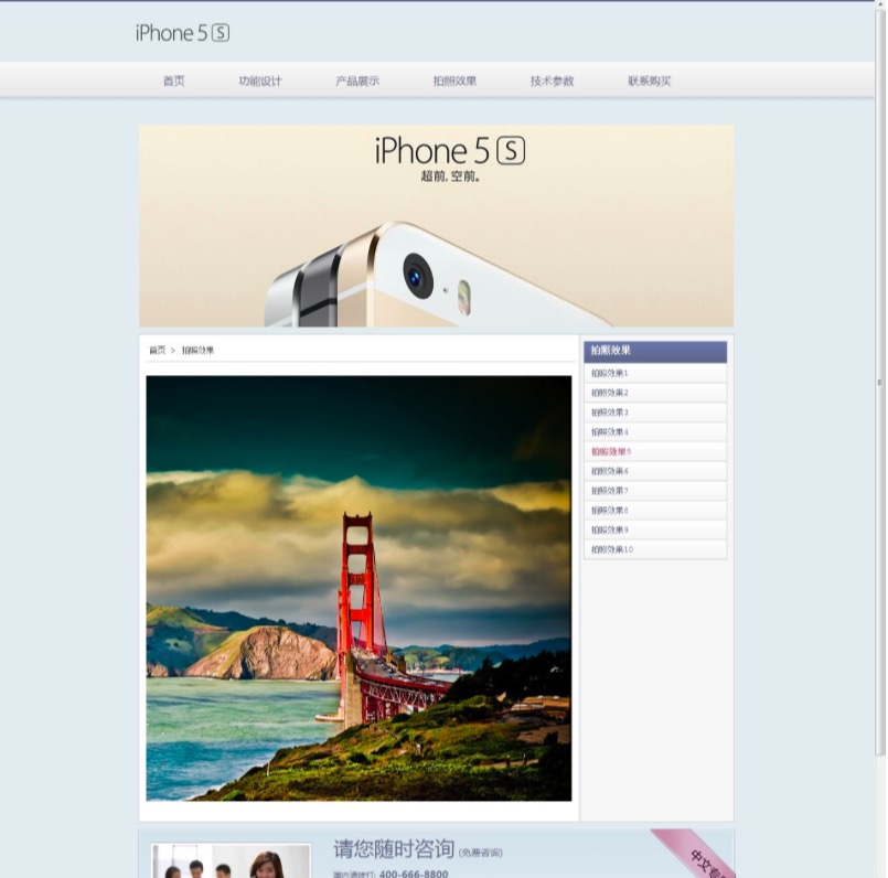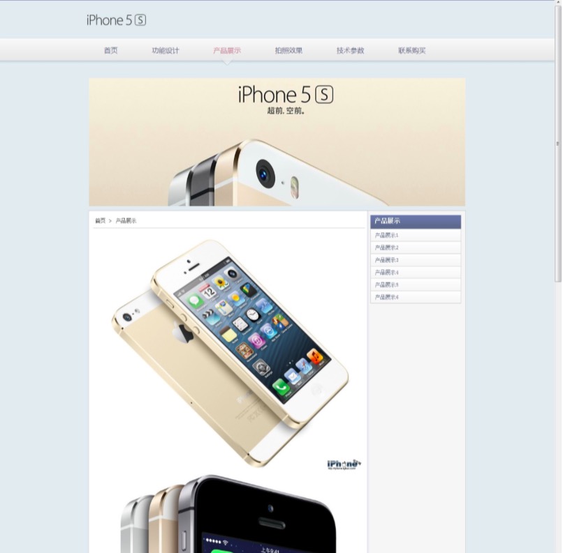 (80元)iPhone 5s 苹果手机功能产品参数介绍主题21页面带flash轮播三级页面结构