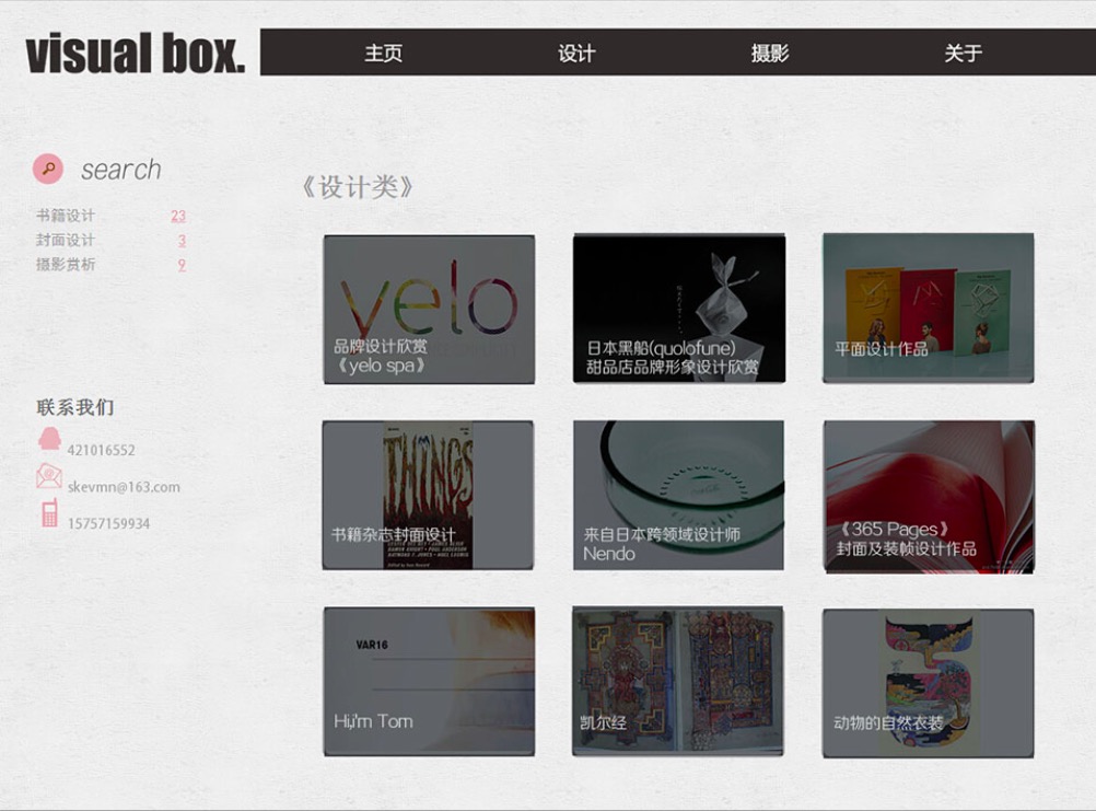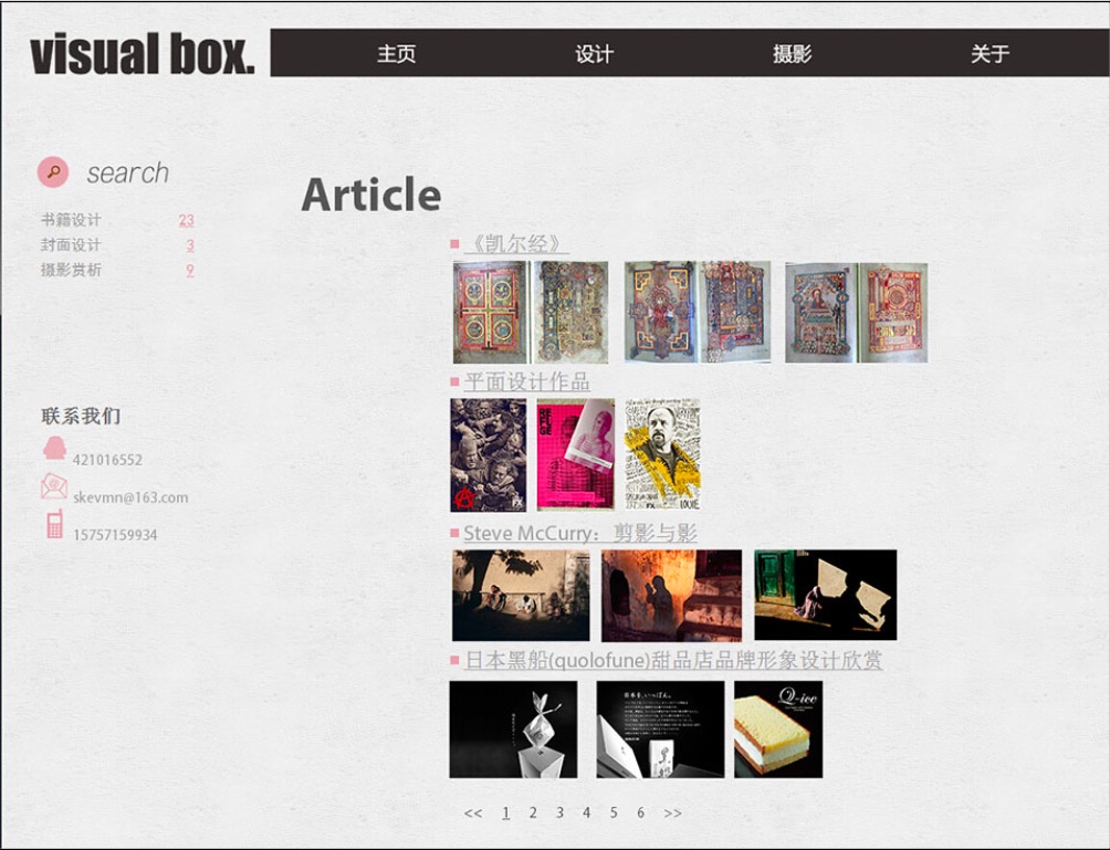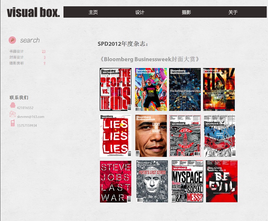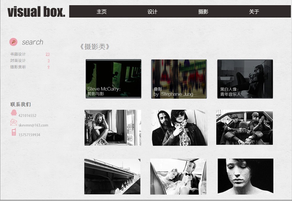 (50元)Visual box 艺术设计摄影主题12页面带轮播三级结构简单时尚