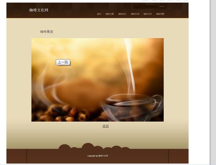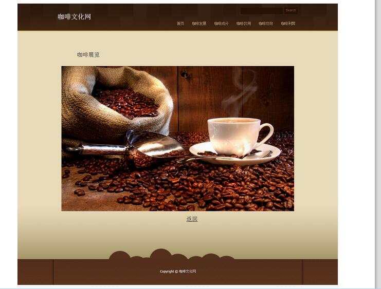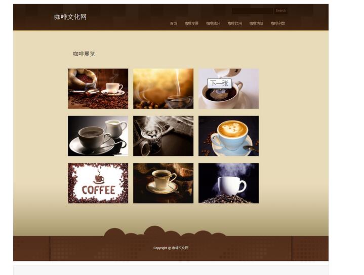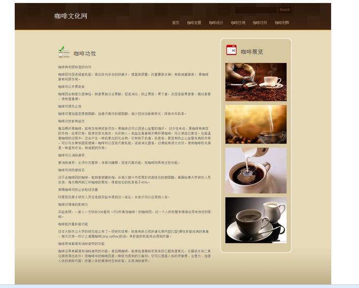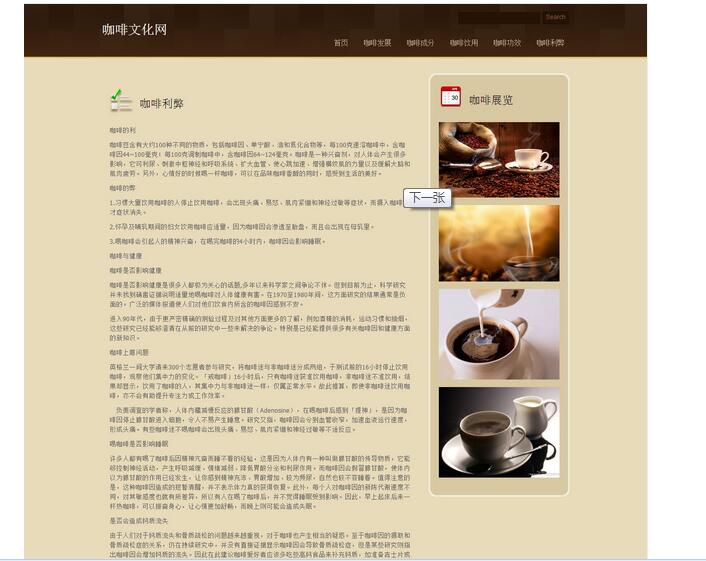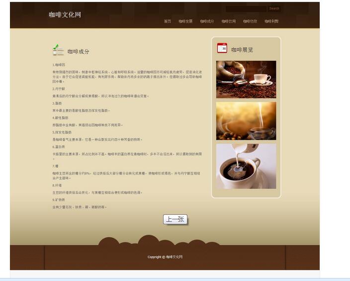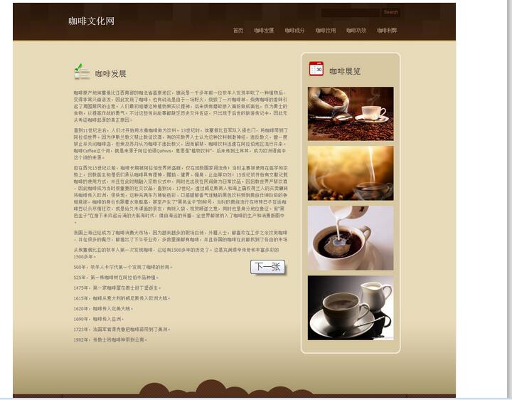 (70元)咖啡文化网 16页面 咖啡美食饮品主题 带背景音乐 设计复古文化味儿足