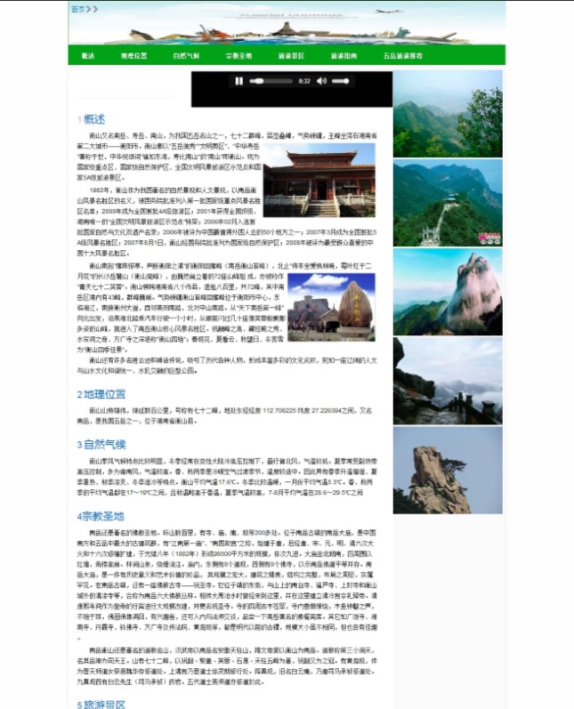 (50元)五岳 6页面 泰山嵩山华山衡山恒山 名山大川旅游介绍主题带视频带轮播特效动画带音乐文化