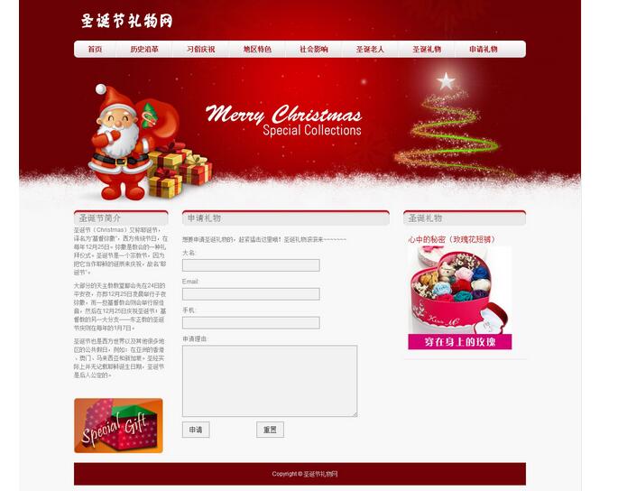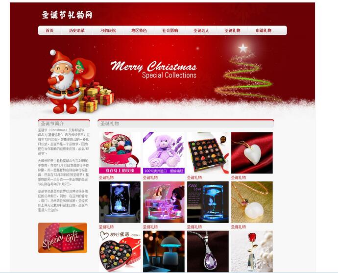 (80元)圣诞节礼物网 20页面 32页面(90元) 25页面(80元)圣诞节日文化 带背景音乐带留言表单 红色