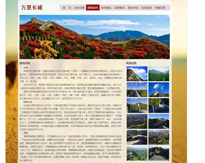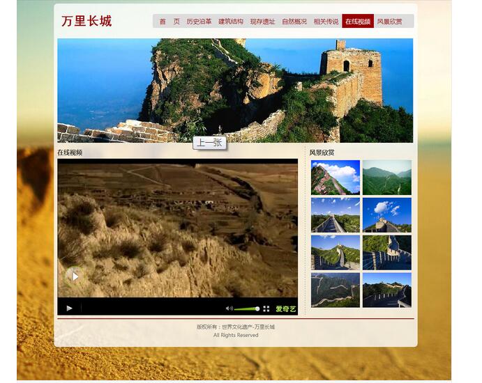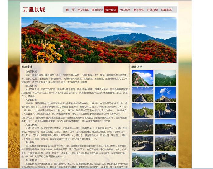 (70元)万里长城 16页面 38 页面(90元)28页面(80元)世界文化遗产 旅游景点名胜 带在线视频带JS轮播
