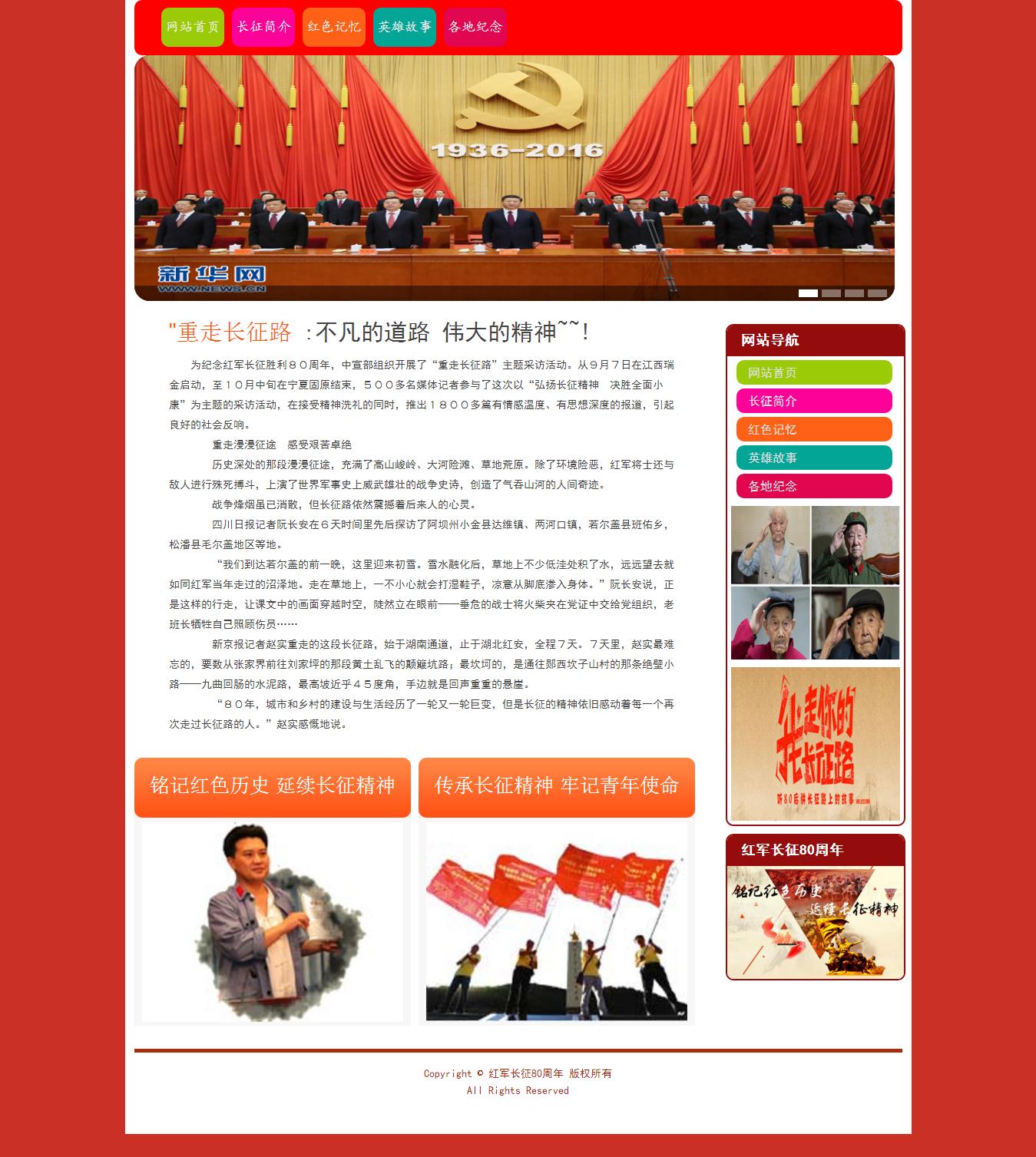 104demo长征80周年纪念带视频带滚动轮播特效专题6页面(50元)文化