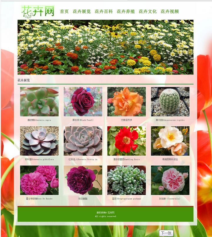 花卉网 鲜花花卉主题20页面带flash带背景音乐带本地视频三级结构简单脱(80元)鲜花礼品