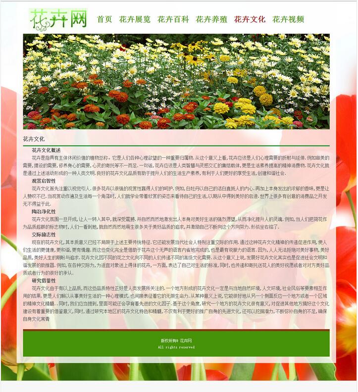 花卉网 鲜花花卉主题30页面带flash带背景音乐带本地视频三级结构简单脱(90元)鲜花礼品