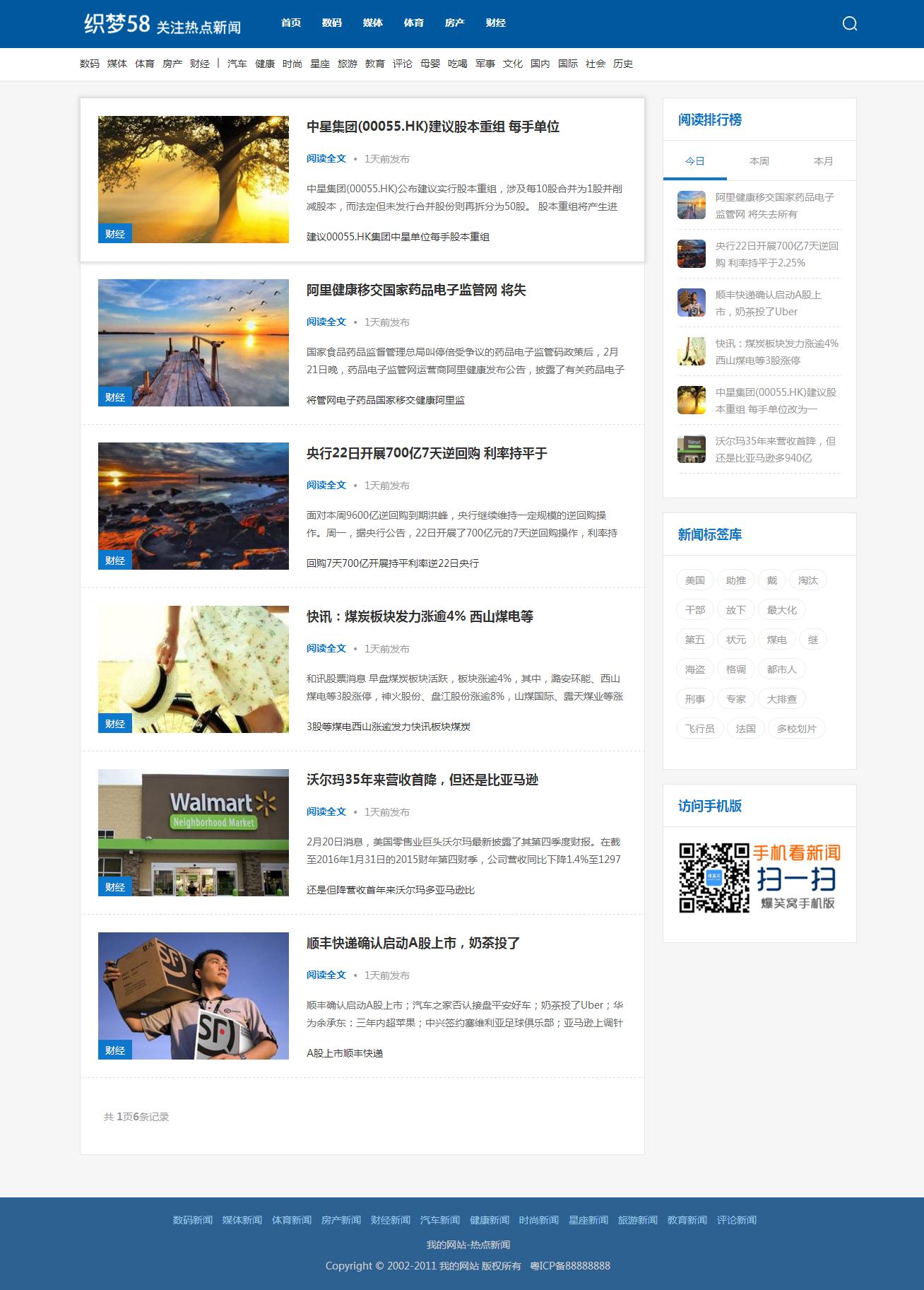 01xiaohai蓝白博客新闻网站带轮播特效 165个页面120元{6个页面 50元}