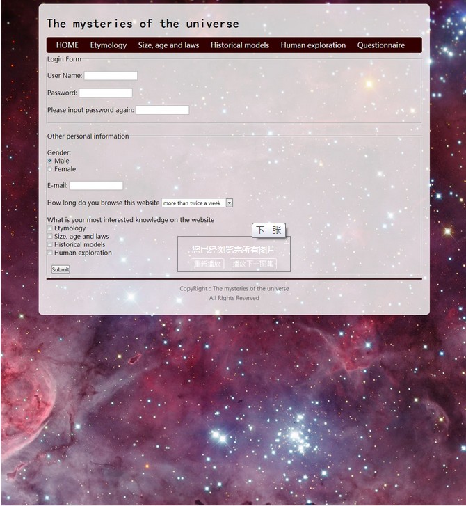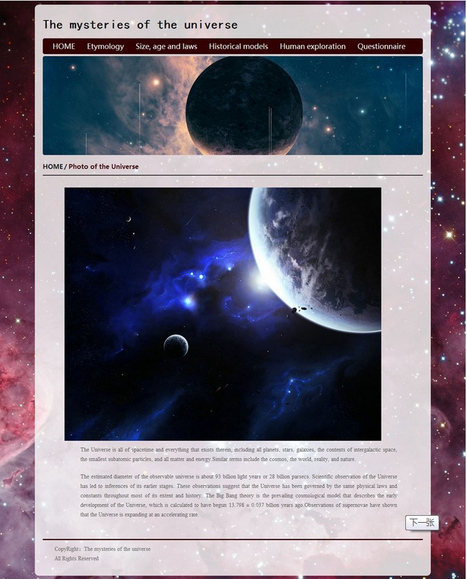 宇宙的奥秘 18页面 The mysteries of the universe 外文版英文版 带背景音乐 图片轮播特效