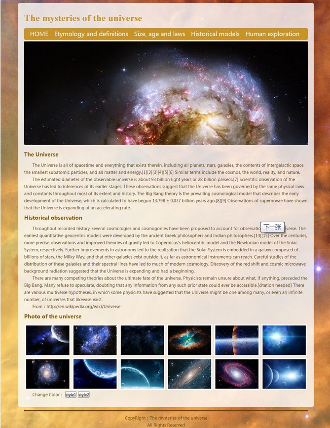 宇宙的奥秘 5页面 The mysteries of the universe 外文版英文版 带网页换肤功能(40元)