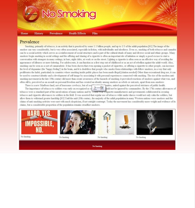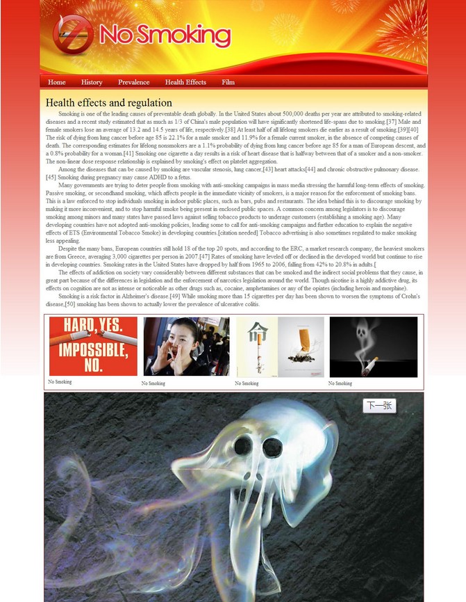 No Smoking 5页面 禁烟宣传网页 留学生定制 外语英文版 带本地视频(40元)