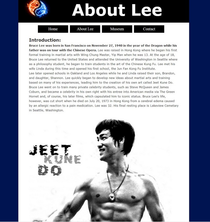 Bruce Lee 李小龙武打明星人物介绍网站英文版本9页面版本A(60元)