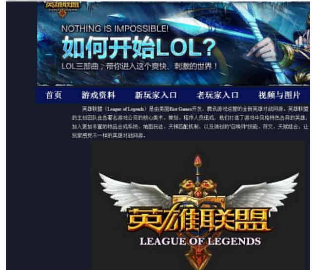 英雄联盟LOL 网游竞技社区 5页面游戏主题(40元) 带设计说明(论文)(50元)带视频带轮播特效带表格布局(1/5)
